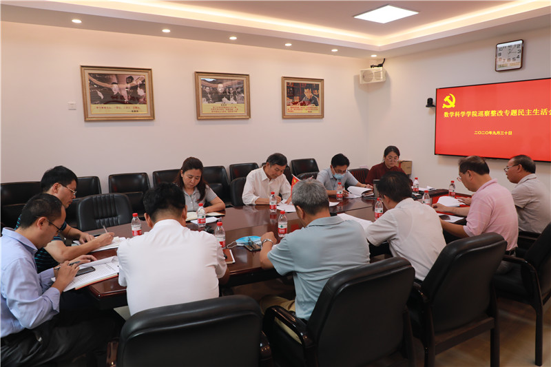 根据校党委巡察工作统一部署,9月30日下午,数学科学学院党委召开巡察反馈意见整改落实专题民主生活会。专题民主生活会以习近平新时代中国特色社会主义思想和党的十九大精神为指导,以“四个意识”为标杆,以“两个维护”为根本任务,围绕“四个落实”,紧紧对标巡察反馈意见,深刻剖析问题产生的根源,明确提出今后努力方向和整改措施。学院全体党政领导班子成员出席会议,校党委第三巡察组副组长林自和参加并指导会议,院办主任、党务秘书、团委书记列席会议。学院党委书记黄宝秋主持会议。