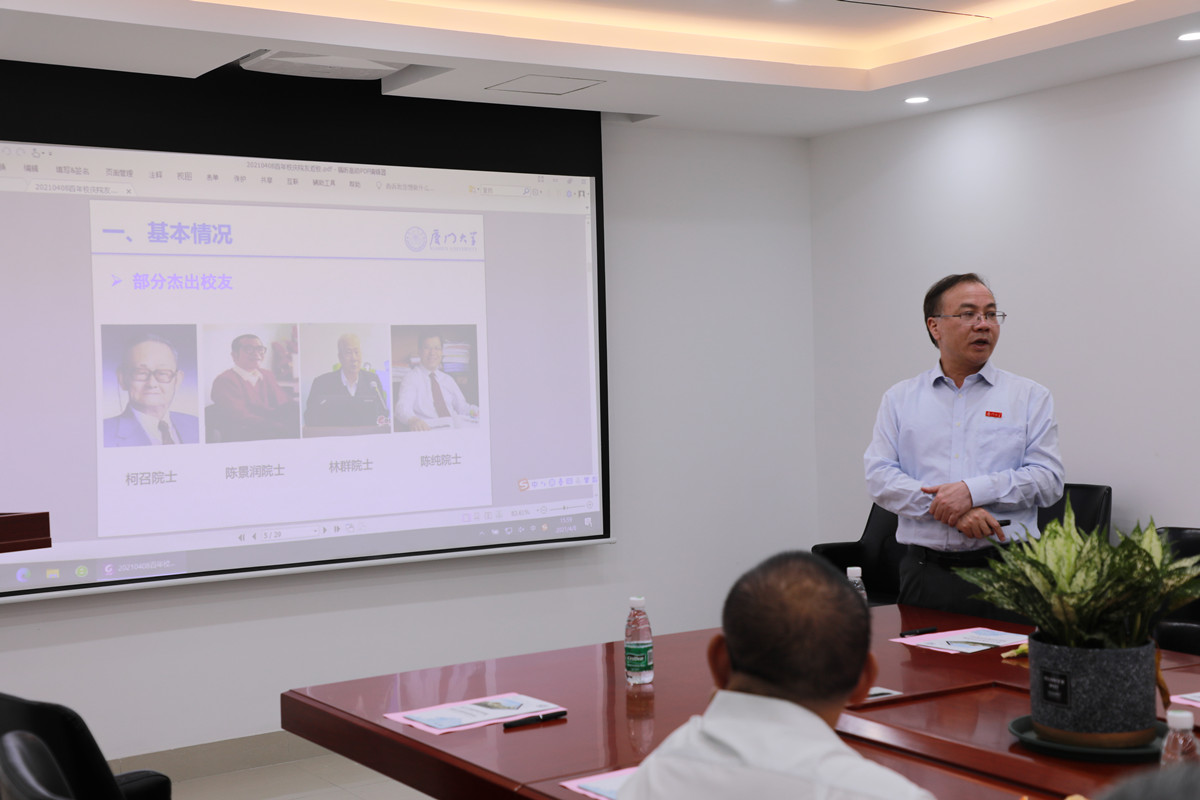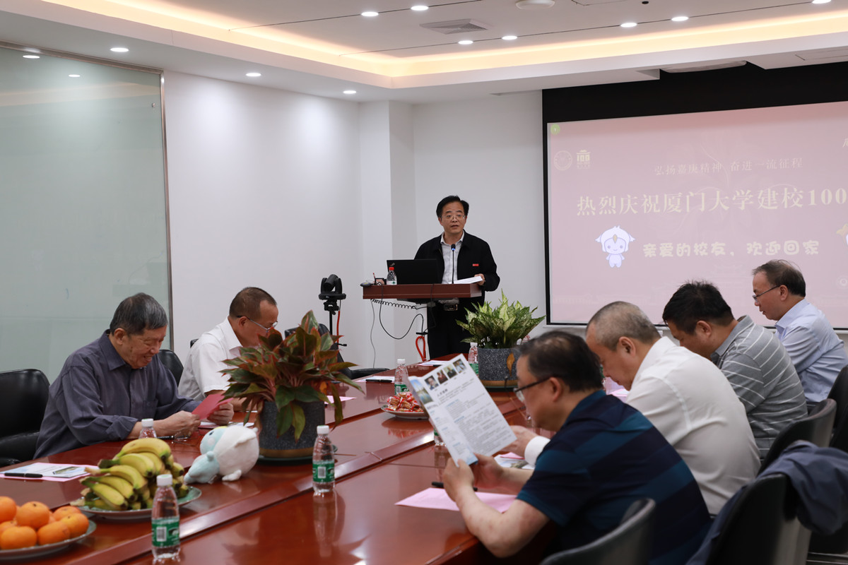 黄宝秋代表学院对院友返院表示热烈欢迎。他指出,在全校上下深入学习习近平总书记贺信精神、隆重庆祝母校百岁华诞之际,学院组织院友返校参观、座谈,对于增进院友对母院的了解、推动学院事业发展具有重要意义。母院所取得的每一份成就和进步都离不开院友的关心和支持,每一位院友都是学院发展的见证者、推动者、建设者。我们一定要铭记总书记的殷殷嘱托,坚守为党育人、为国育才初心,传承弘扬学院悠久的办学传统和以杰出院友陈景润先生为代表的科学精神,团结全院师生和广大校友勠力同心,为建设数学强国、实现中华民族伟大复兴的中国梦作出厦大数学人应有的贡献。