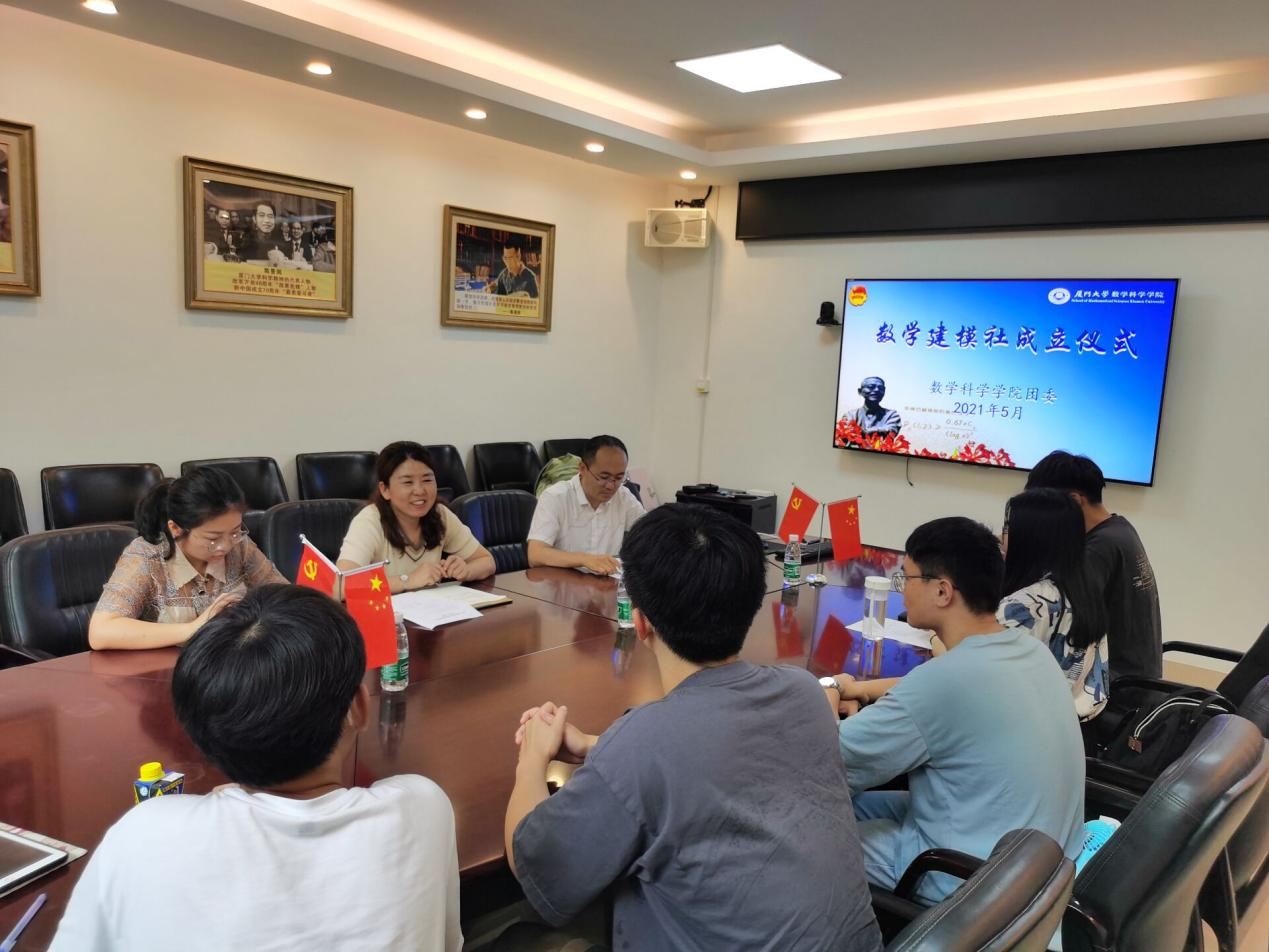 为普及数学之美,培养创新意识和创造能力,同时为同学们提供一个良好的沟通平台,5月19日,厦门大学数学建模社成立仪式在数学科学学院海韵园行政楼B313会议室举行。学院党委副书记丁昌利、团委书记于正伟、团委副书记陈淑铌以及社团发起人等出席仪式,社团发起人刘家浩同学主持仪式。