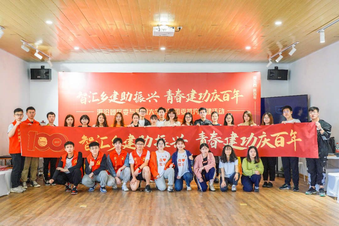 4月28日上午,为迎接建党100周年暨纪念五四运动102周年,继承和发扬“五四精神”,深入开展“学党史、强信念、跟党走”学习教育活动,凝聚青春力量,助力乡村振兴,数学科学学院团委与海沧团区委合作共建,组织师生参加了在海沧区东孚香草园开展的“智汇乡建助振兴 青春建功庆百年”海沧团区委与厦门大学学院团委签约共建活动。厦门市团市委副书记洪清岩,海沧区委副书记庄海英,海沧区团区委副书记卢梅花,数学科学学院党委副书记丁昌利、数学科学学院团委书记于正伟及管理学院、公共事务学院、法学院师生代表出席共建活动。