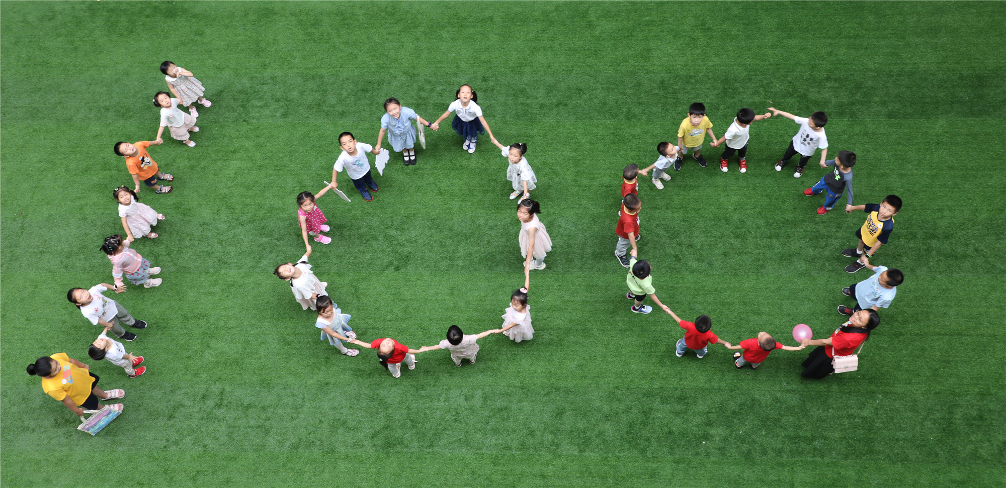 活动最后,小朋友们在绿色的草地上摆出“100”的造型,共同庆祝建党和建校100周年。愿小朋友们健康快乐地成长,听党话,跟党走,德智体美劳全面发展,永作祖国家中宝!