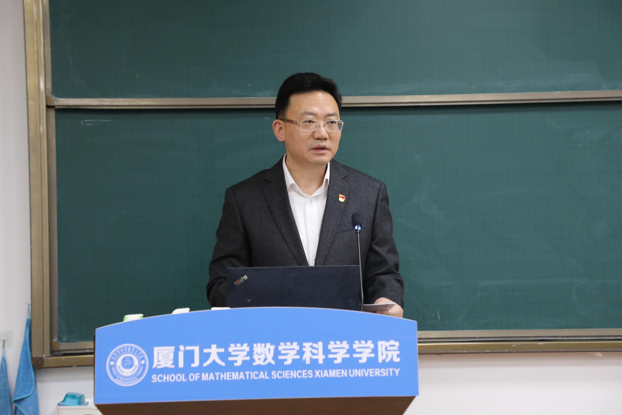全海代表校党委、校行政宣布了任免决定:谭绍滨任厦门大学数学科学学院院长,张剑文、金贤安、宋翀任厦门大学数学科学学院副院长,免去邱建贤的厦门大学数学科学学院副院长职务。会上,全海简要说明了数学科学学院行政领导班子换届工作的整体情况,充分肯定了学院上一届行政领导班子聚焦立德树人根本任务和国家基础科学发展战略,在人才培养、科研工作、学科建设、队伍建设和国家天元数学东南中心建设发展等方面取得的突出业绩,并代表校党委、校行政对上一届学院行政领导班子成员为事业发展作出的贡献表示感谢,对邱建贤同志多年来的辛勤付出和所作贡献表示敬意。