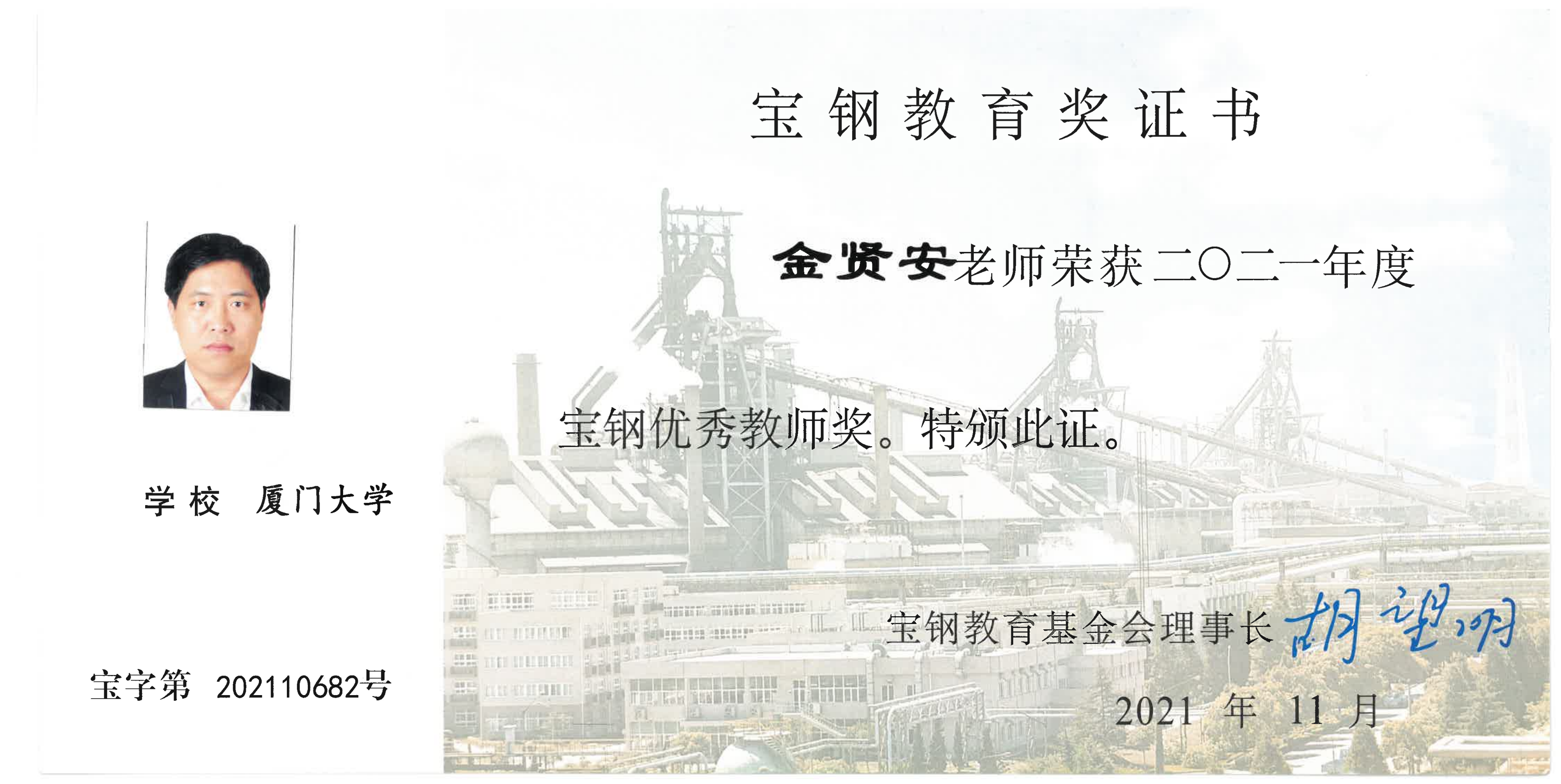 日前,2021年度宝钢教育奖评选结果揭晓。我院金贤安教授荣获“宝钢优秀教师奖”,成为此次厦门大学3名获奖教师之一。