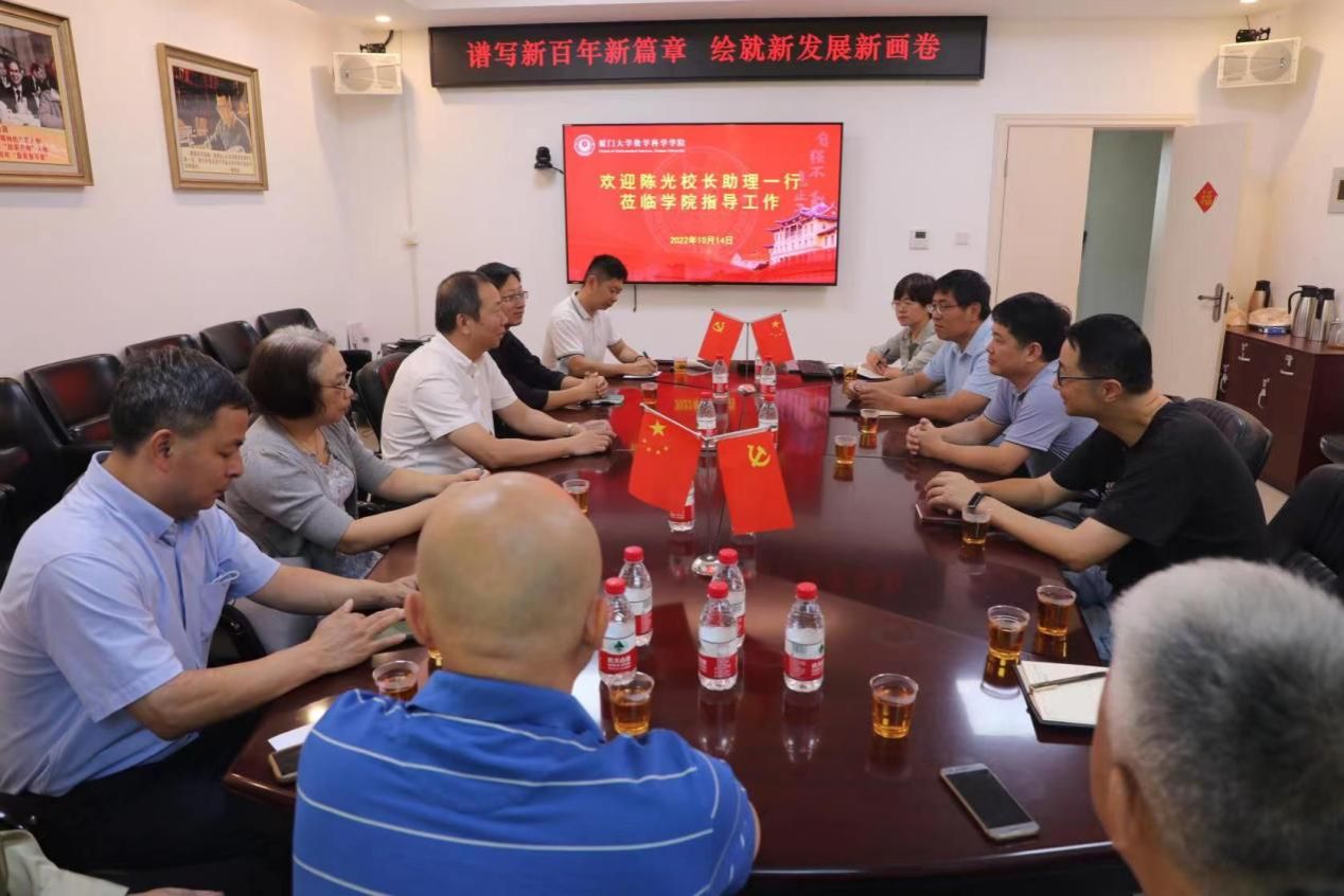 10月14日上午,校长助理、翔安校区管委会主任陈光,翔安校区办公室、学生办、教务办、团工委、图书馆、教育技术办、后勤服务办负责人一行到学院调研座谈,学院党委书记张清榕、副院长金贤安、公共数学教学部主任张文、副主任吴聪敏参加调研座谈,座谈会由张清榕主持。