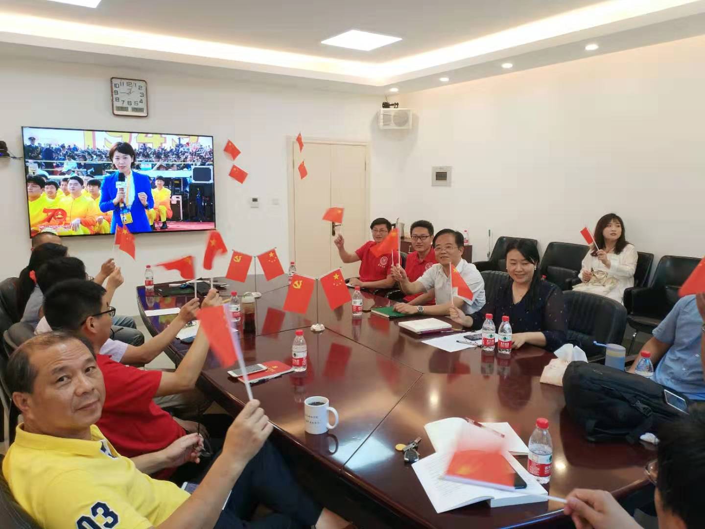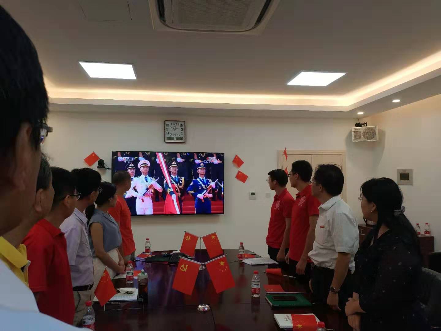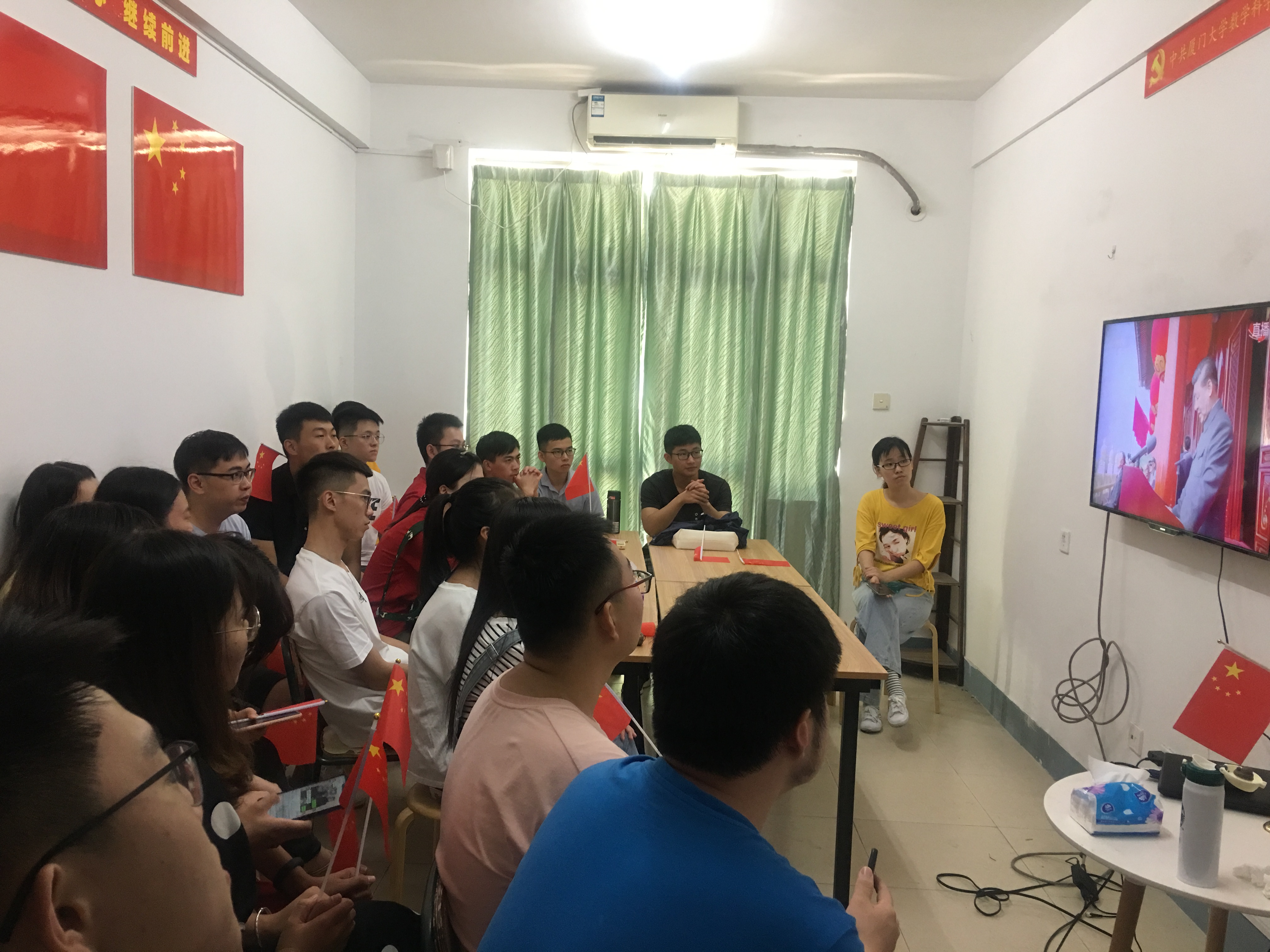 上午九点,学院313会议室、海韵园学生公寓党员服务站同时组织师生集中观看70周年国庆庆祝活动直播。院领导、党支部书记、师生党员代表和当天清晨参加学校升旗仪式的师生代表济济一堂,认真听取习近平总书记在庆祝中华人民共和国成立70周年大会上的重要讲话,观看庆祝大会及阅兵式盛况,感受新中国成立70年来所取得的伟大成就,大家心潮澎湃、倍感振奋,挥舞手中的国旗齐唱国歌,为祖国喝彩、向伟大的中国共产党致敬。壮丽70年,奋进新时代,大家为中华民族伟大复兴的光辉历程深感自豪,纷纷表示要与新中国共发展,与新时代齐奋进,不忘初心、牢记使命,在推进“双一流”建设、实现“两个一百年”奋斗目标的新征程中砥砺前行、作出新贡献。