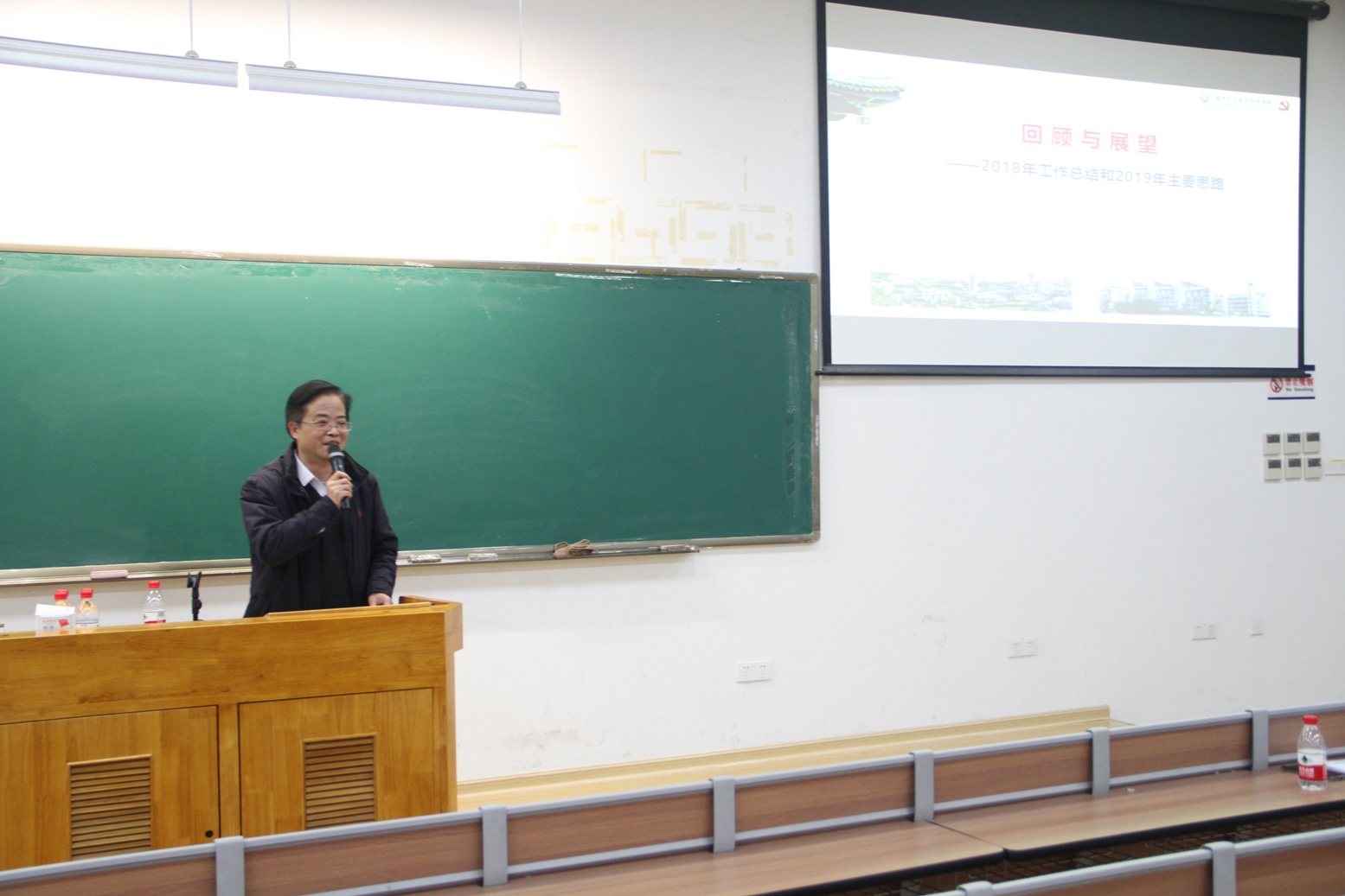 2019年1月18日下午,学院组织召开2019年度第一次教职工大会,学院党政领导和全体教职员工参加了会议。黄宝秋书记主持会议。