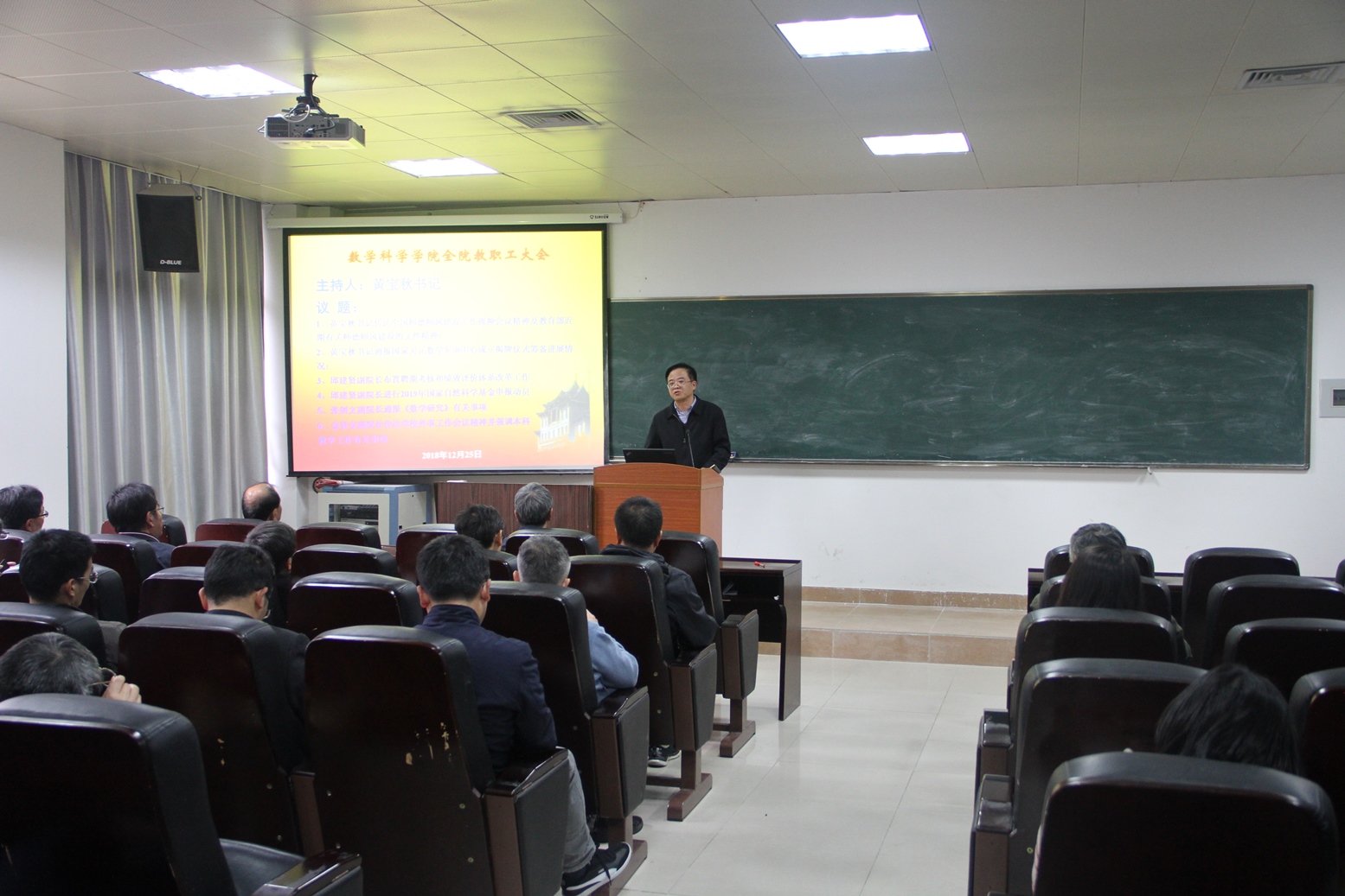 12月25日下午,学院在海韵园实验楼105召开学期末教职工大会,学院党政领导和全体教职员工参加了会议。黄宝秋书记主持了会议。