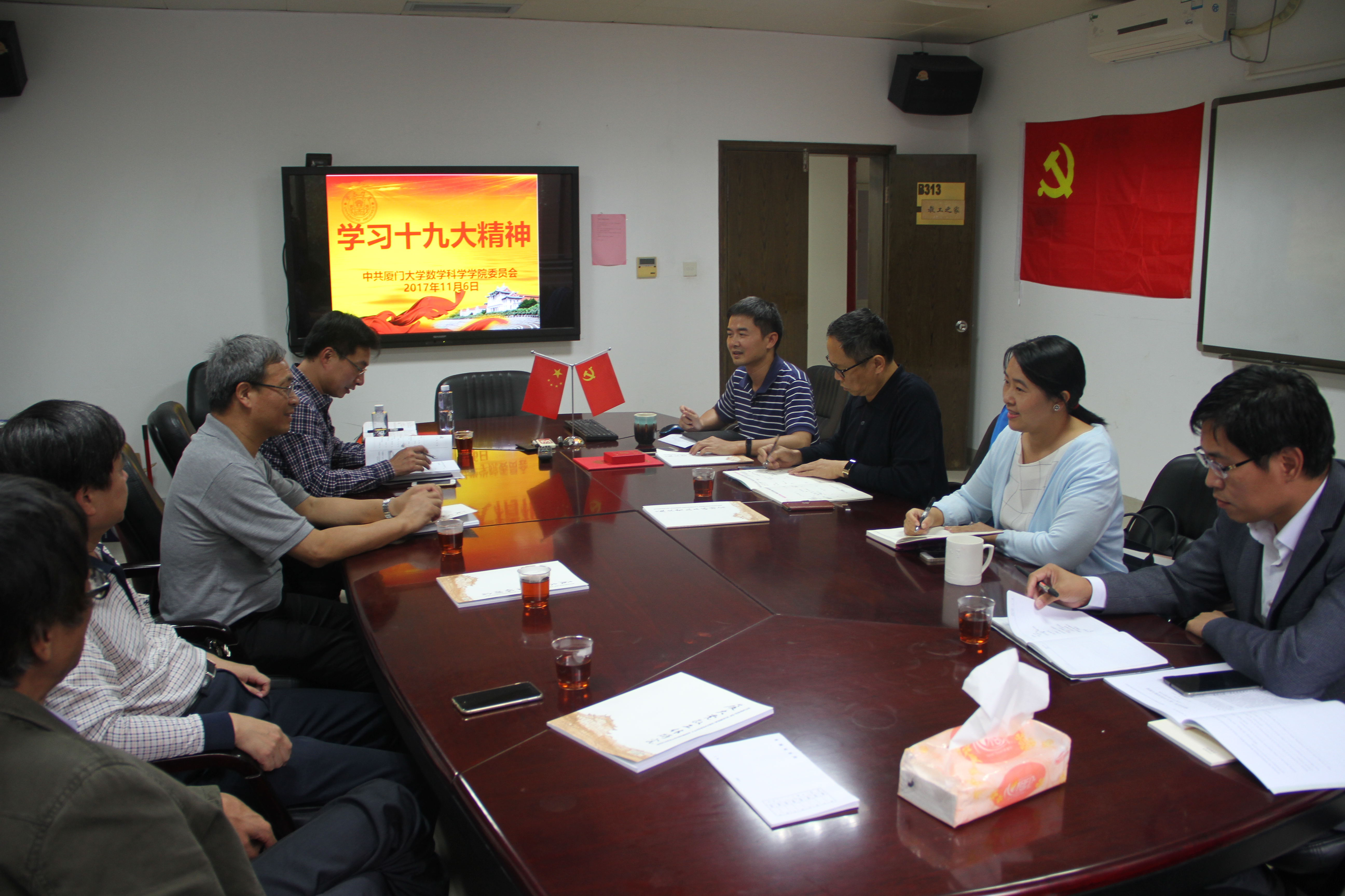 2017年11月6日下午,学院召开党委会,集体学习十九大精神,重温入党誓词。
