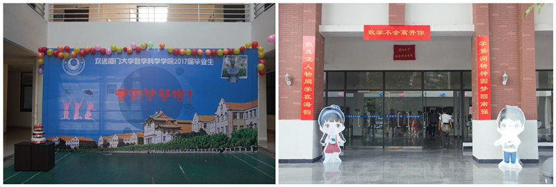 5月31日下午,我院在实验楼为2017届毕业生举行冷餐会,现场挂满气球五彩缤纷,门口的对联“数风流人物同学在海韵,学景润精神圆梦回南强”喜气洋洋,“景润青年”卡通形象引人注目。