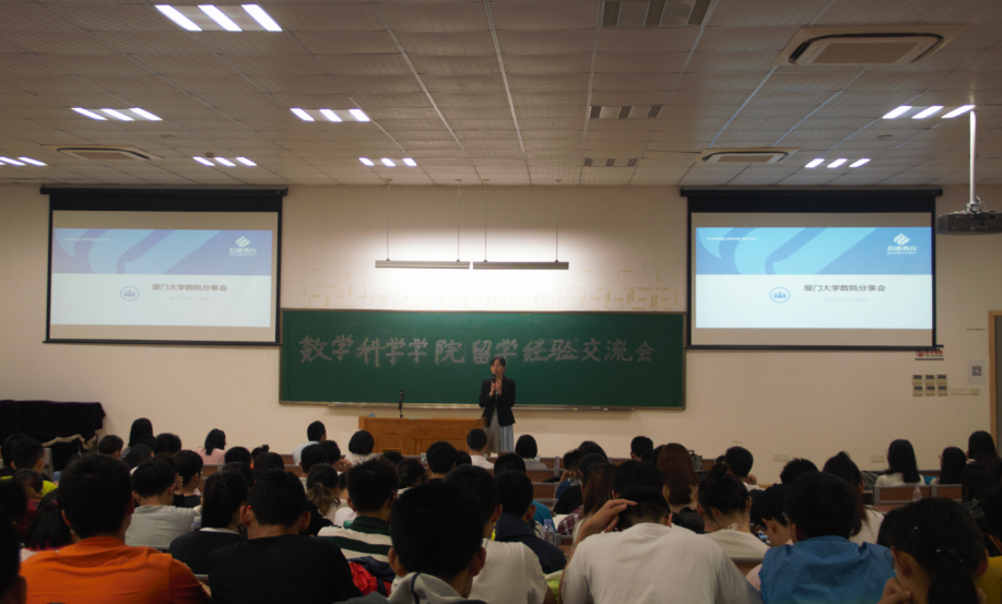 5月15日,数学科学学院学风建设之留学经验分享会在数理大楼117成功举办。学院党委书记张明智、团委书记陈向柳、团委副书记石义凯、辅导员陈淑铌、外事秘书郭淑敏、兼职辅导员柯颖、启德留学厦门公司总经理丁静芳女士和学院2015、2016年级本科生参加了会议。