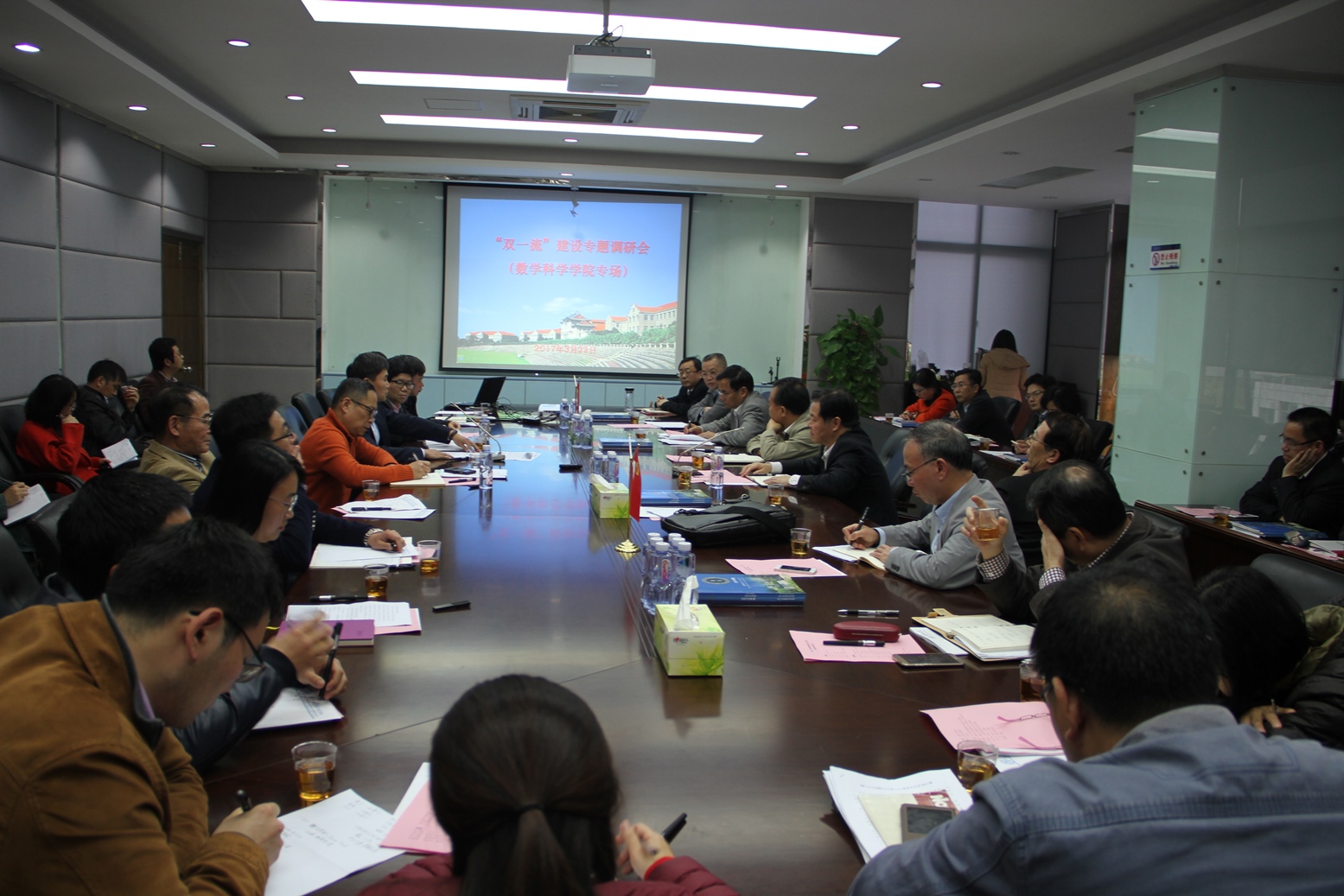 邬大光副校长、叶世满副校长和杨斌副校长也在会上作了交流发言。他们肯定了数学科学学院在事业发展中取得的成绩,认为数学科学学院充满激情、活力和动力,事业发展呈现出非常好的上升趋势;数学科学学院承担全校公共数学的教学任务,超过70%的教学工作量都是为全校人才培养做贡献;数学专业毕业生的深造率、出国率及获得国外全额奖学金的比例很高,在人才培养方面积累了很多有益的经验和做法,值得在全校借鉴和推广,希望数学科学学院将培养学生的经验和优势辐射到全校;人事部门全力支持数学科学学院进行人事制度改革,改革措施要具有中国特色,并借鉴国际经验且必须具有可持续性;数学科学学院要积极有效利用博士后资源,想方设法增加博士后人数。