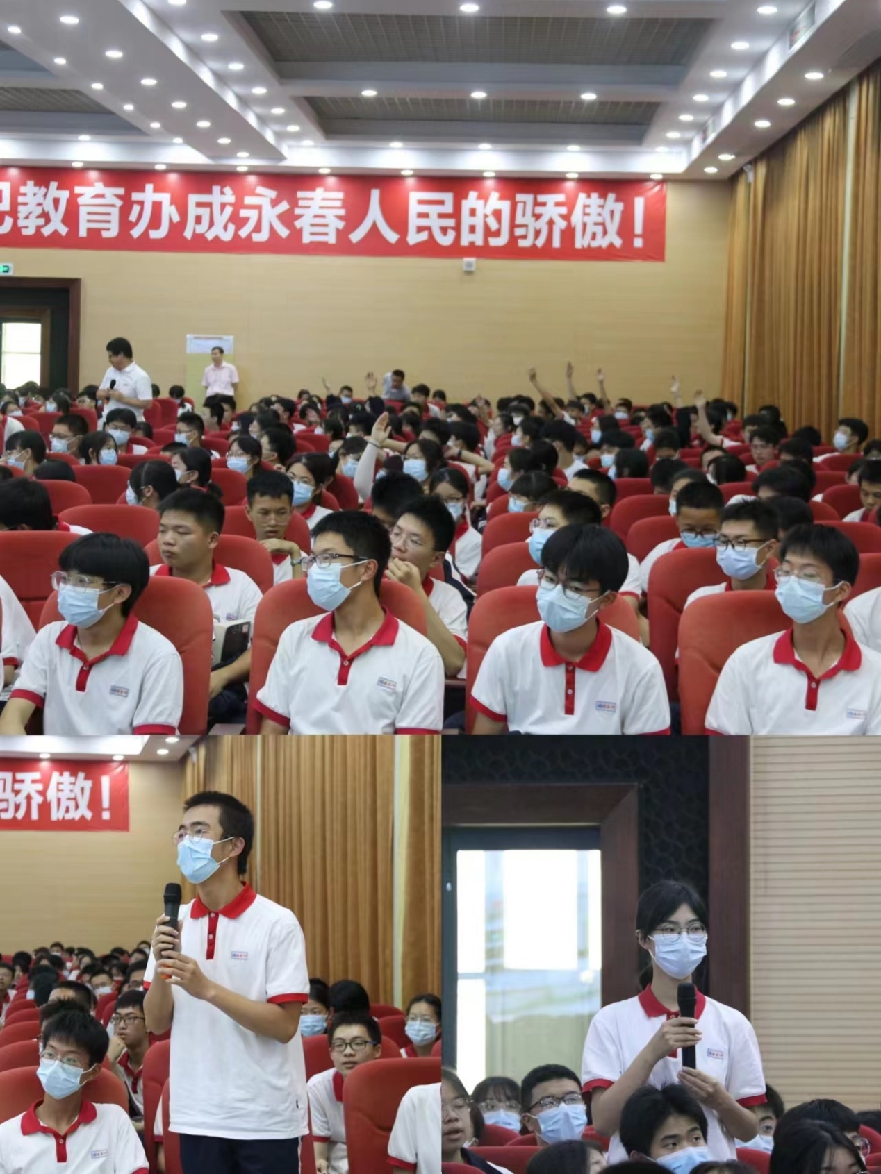洪明辉院士进行了题为《光:照亮现代生活》的科普讲座。他详细介绍了光学基本原理和激光技术及微纳光学的应用前沿;通过医疗、交通、制造等领域的应用凸显了光学技术的神奇魅力,分析了当前激光技术的发展前景;并就光学微球显微镜、便携式表面增强拉曼光谱仪、激光清洁三个方面的研究成果向同学们展示了光学技术的发展与产业化应用前景。通过对前沿技术深入浅出的讲解,拓展了同学们的知识面,激发了同学们的求知热情。在互动与交流环节,洪明辉院士与同学们就光学知识、学习及科研经历等方面的问题进行了交流分享。会场气氛达到高潮。科普讲座后,洪明辉院士表达了对同学们的殷切期望,鼓励同学们努力学习,欢迎同学们到厦门大学研学,提高科学素养;洪院士进一步分享了厦门大学校主陈嘉庚先生的爱国之情,利用陈嘉庚先生倾资办学的事迹,向同学们展示了厦门大学优秀的校风,并欢迎同学们报考厦门大学,他将在中国最美的大学等待同学们的到来。