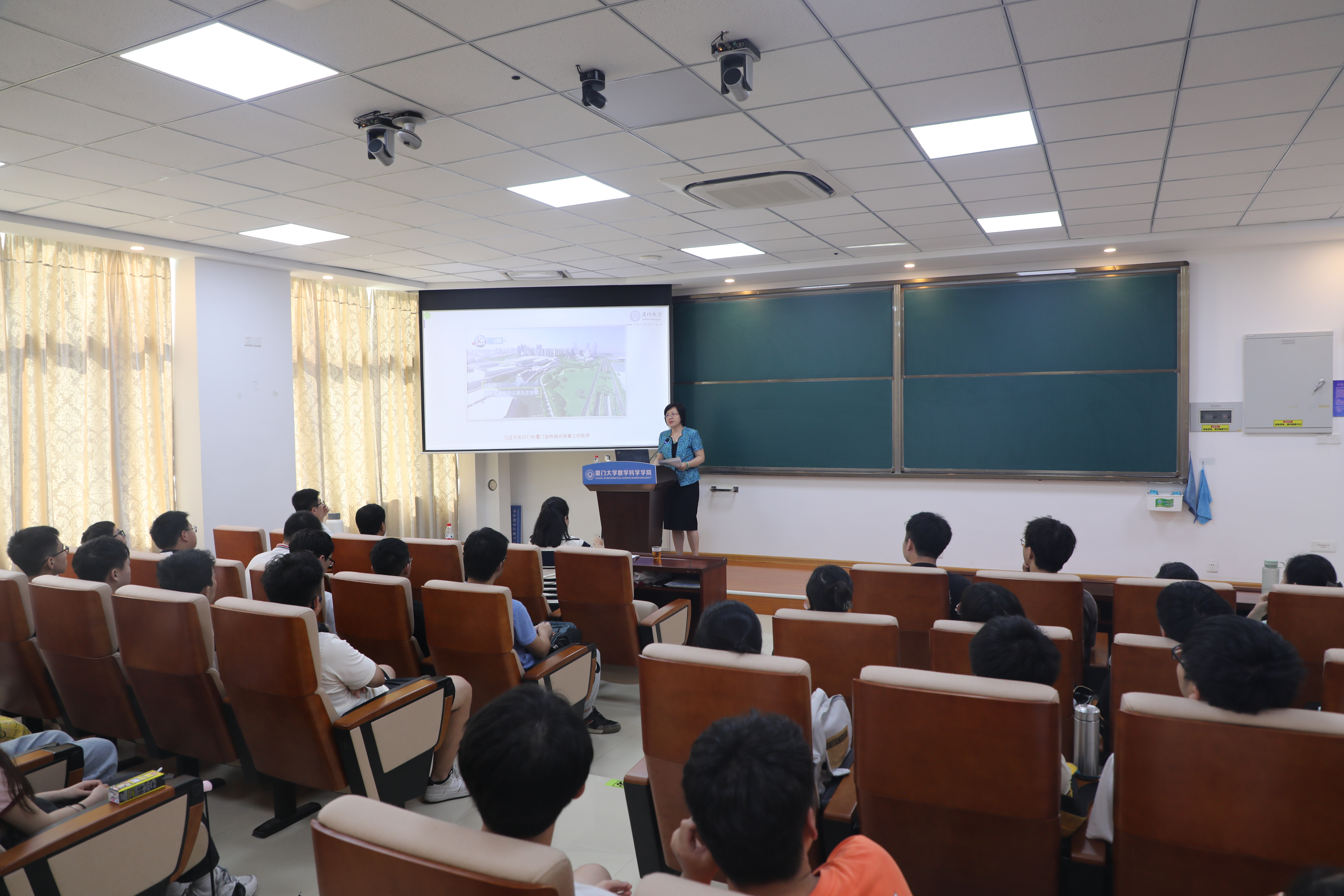 6月30日下午,校党委常委、副校长邓朝晖在海韵园实验楼105报告厅,为数学科学学院师生党员讲授专题党课。