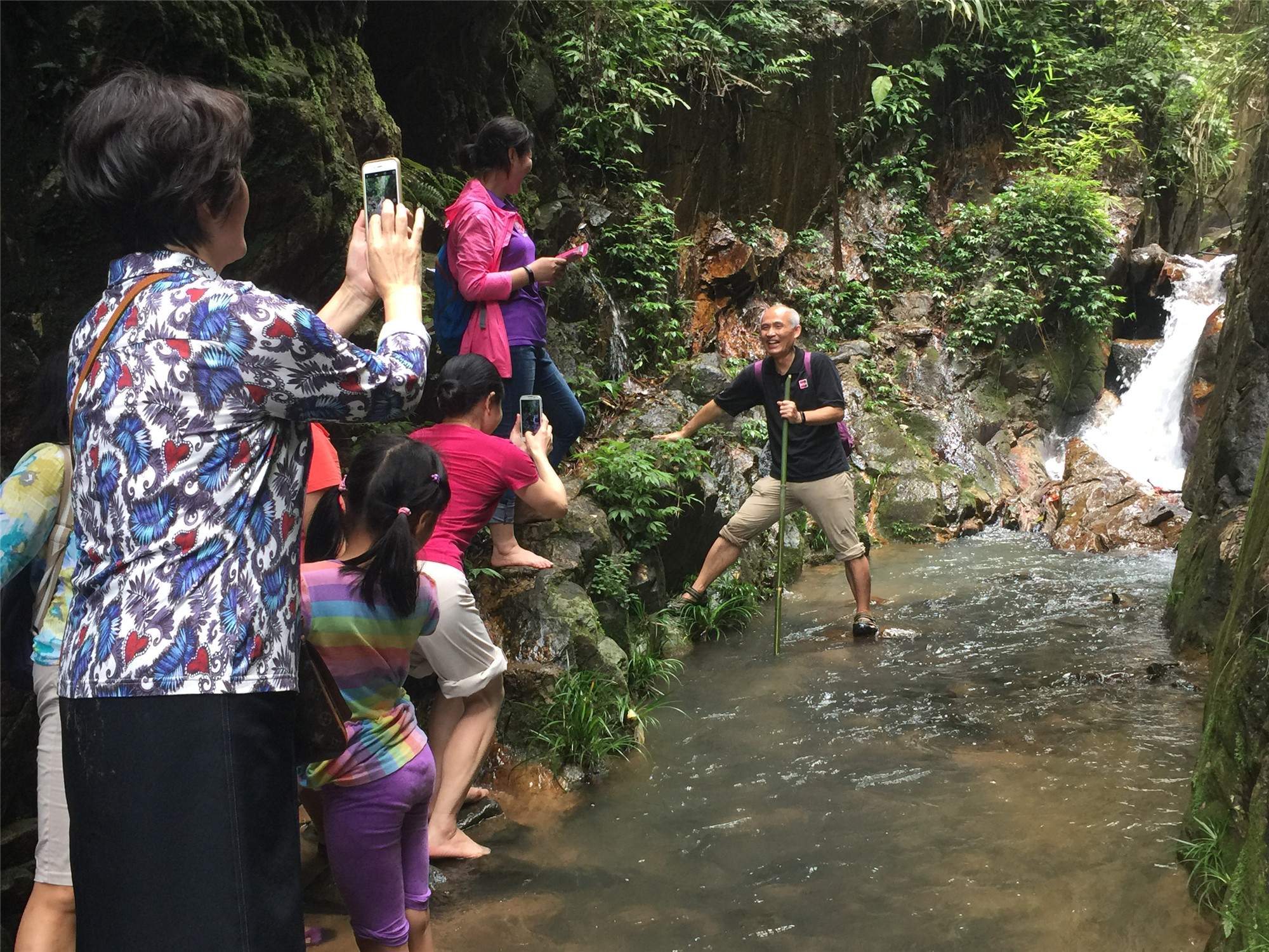 午饭后,在当地居民的带领下,一行人兴致勃勃地出发,奔向村子尽头的峡谷和瀑布。一路欣赏着层层绵延的梯田、叠翠的茶园,进入了峡谷。走在崎岖的山路上,伙伴们发挥充分发挥了互助友爱的精神,一路欢声笑语此起彼伏,融入在山清水中,尽情享受着与自然美景的融合。大家纷纷举起手中的相机,定格一个个美好的瞬间。