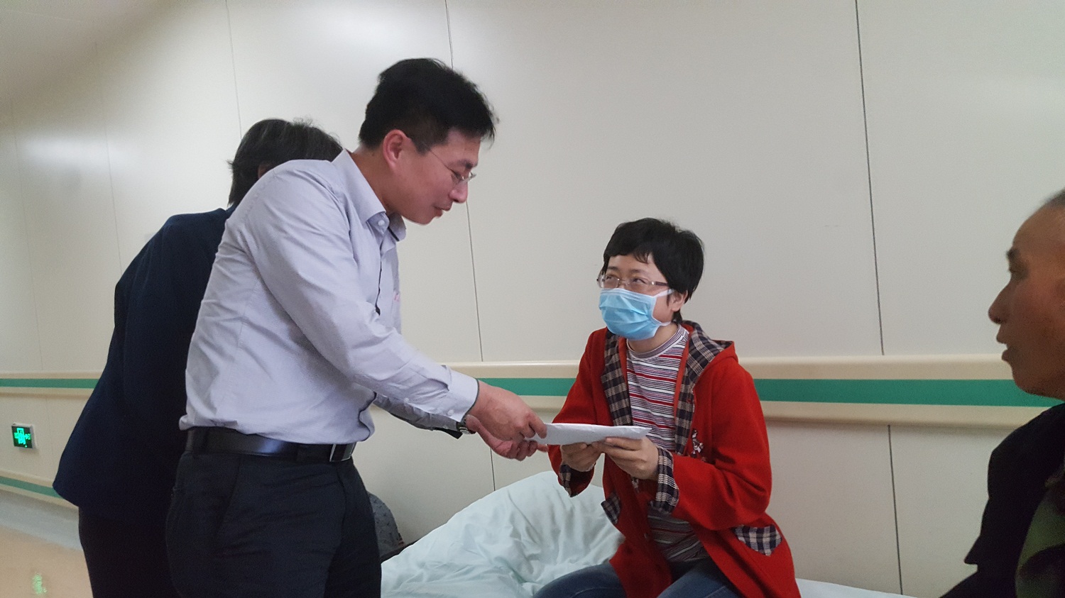 张剑文询问了钱金菊的身体情况,鼓励她一定要坚强乐观,争取早日战胜病魔,并代表学院送上了“关心下一代”爱心急助金。张剑文还向钱金菊的主治医生详细了解了钱金菊的治疗方案和进度。钱金菊及家长非常感谢学院领导、老师和同学们对钱金菊生病以来的关心和帮助,她表示一定乐观面对,积极治疗,争取能早日恢复健康,重返校园。