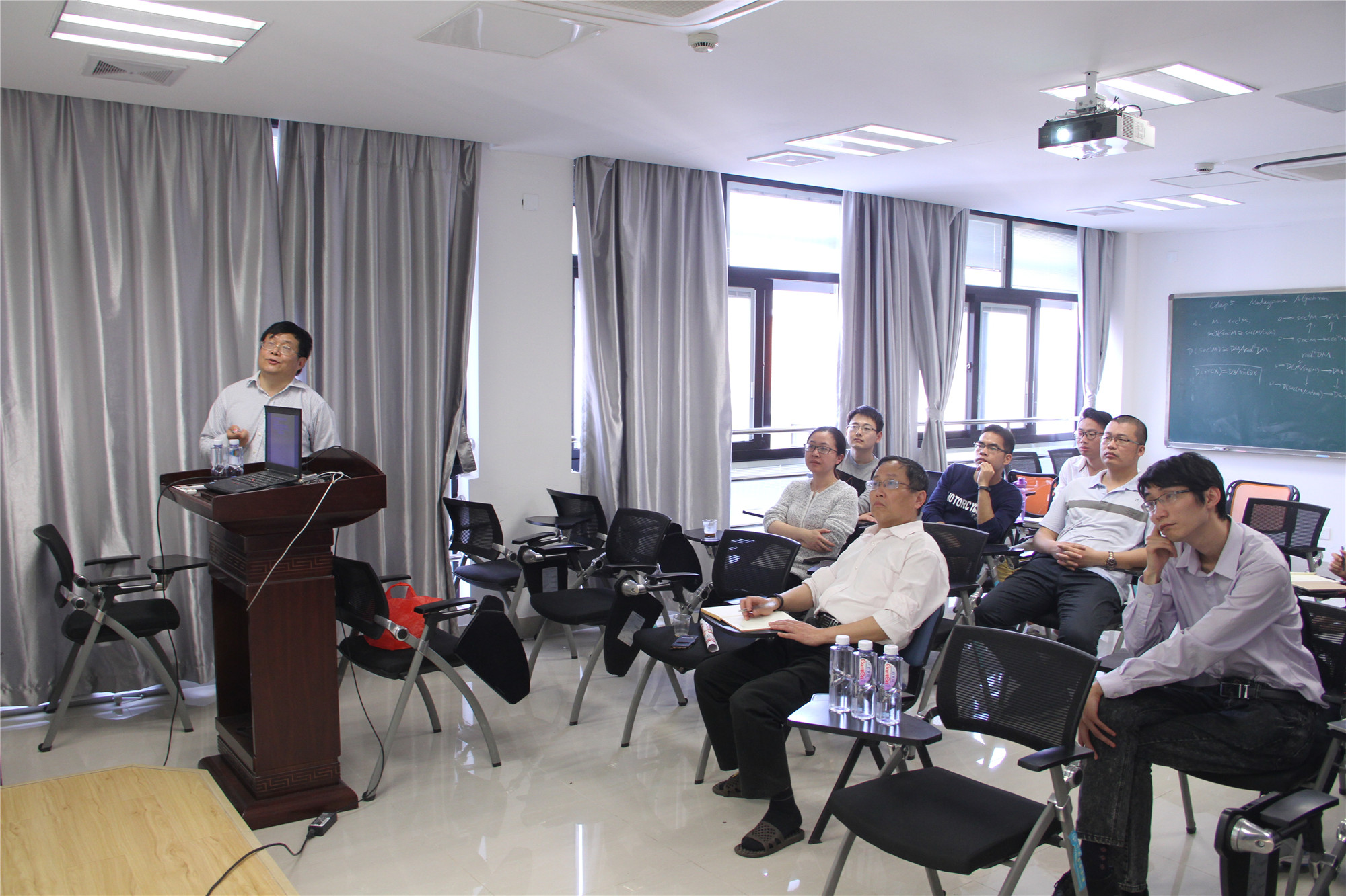 报告正式开始,苏教授简明扼要地阐述了李超代数的概念及相关的定义和结论,重点阐述了他构造的一类广义Loop Super—Virasoro代数的结构,并详细说明了李超代数和李代数之间的一些联系和区别。最后,他介绍了KY.COM广义Loop 无中心的Super—Virasoro代数的导子代数,自同构群,二阶上同调群。报告即将结束时,苏育才教授谈到了李超代数在表示理论的一些未解决的问题,引导同学们深入思考,并与王清、陈福林等师生进行交流探讨。