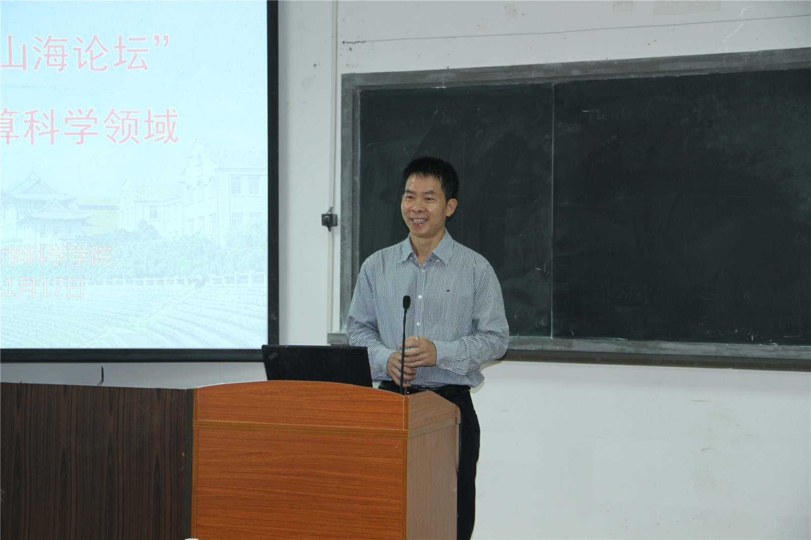 第五届“山海论坛”数学与计算科学领域共安排12场学术报告,分别是:广州中山大学朱熹平教授的《Openness of the future null infinity》、姚正安教授的《液晶方程的渐近性理论》、胡创强博士的《广义Hermitian曲线上的代数几何码的显式构造》、高雄中山大学郭美惠教授的《ESTIMATION OF INVERSE AUTOCOVARIANCE MATRICES FOR LONG MEMORY PROCESSES》、黄杰森教授的《A semi-Lagrangian finite difference WENO scheme for scalar nonlinear conservation laws》、呂宗泽教授的《使用积分因子的调整ADOMIAN分解方法》、杨昌彪教授的《相似序列的融合最长共同子序列之快速演算法》、范俊逸教授的《具CCA安全且植基于身份之匿名多重接收者认证加密机制》;厦门大学白正简教授的《求解随机矩阵特征值反问题的一类黎曼非线性共轭梯度法》、杜魁副教授的《KY.COM几个良态谱方法的初步研究》、周达助理教授的《带有非均匀交互率的流行病动力学》、陶詹晶博士的《基于矩重构的逐维高阶中心Hermite WENO格式》。