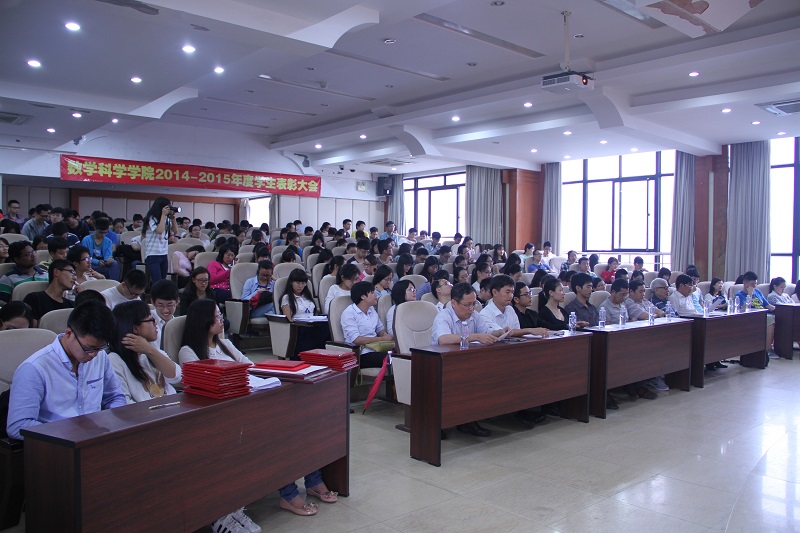 2015年5月26日下午,数学科学学院2014-2015年度学生表彰大会在海韵教学楼504召开。