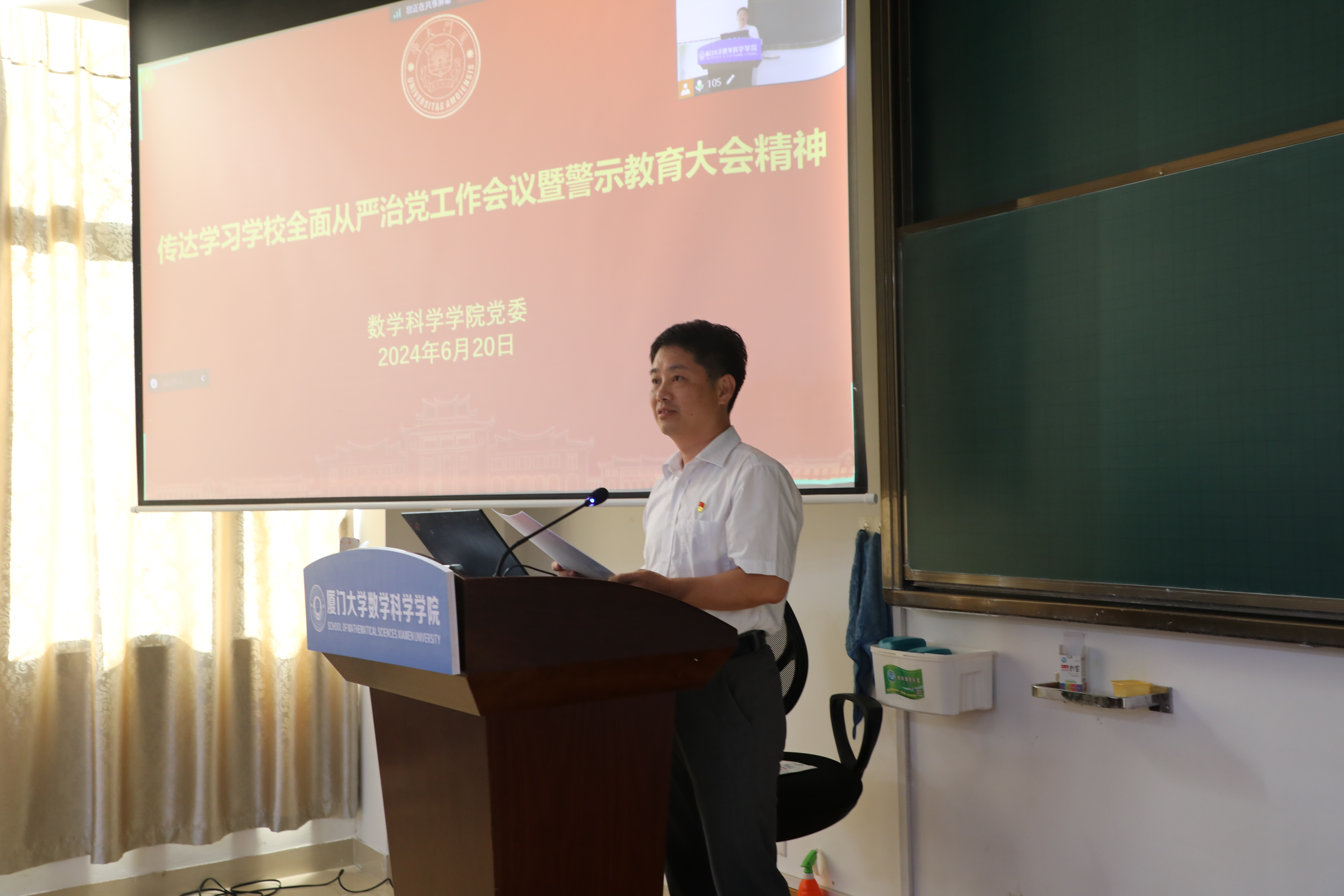 6月20日下午,学院召开党员大会传达学习学校全面从严治党工作会议暨警示教育大会精神,会议由院党委书记张清榕主持。