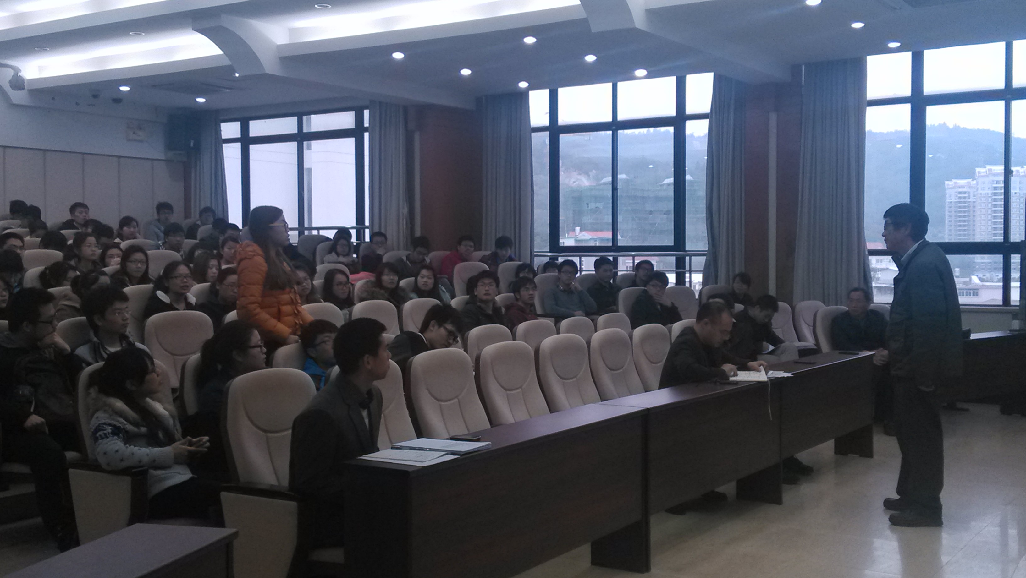 首先,钱建国副院长向同学们介绍了本科生教学方面的工作。他介绍了分管本科生教学的各位老师的职责,刘轼波老师负责本科生的教学计划和学分要求,黄荣坦老师负责本科生的毕业审核事宜,杜魁老师负责保研工作以及基地班的管理,黄晨龙老师负责本科生教学的日常管理工作。他指出,为更加方便、规范同学们的办事流程,同学们要关注学院网站的办事指南,要求同学们严格按照办事指南的程序办事,提醒同学们多关注学院网站本科生教学栏目。刘轼波老师向同学们介绍了我院教学计划和学分要求,并提醒大家及时核查所修学分以及将要学习的课程。黄荣坦老师介绍了往届毕业生的毕业情况,通过数据的分析警示大家,让同学们对自己的大学生涯乃至人生进行合理的规划,强调态度决定一切,在没有毕业“清考”情况下,要求同学们端正态度。随后,负责基地班管理工作的杜魁老师向11级同学介绍了有关推免保研、校际交流的各项工作,并给出了很多非常有意义的建议。