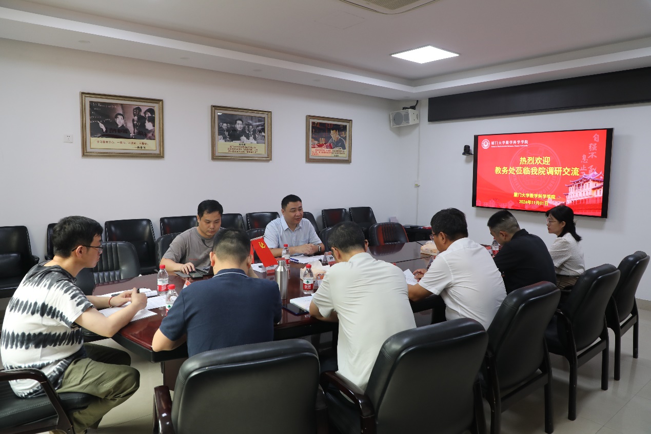 2024年11月1日,教务处副处长钟杰、学务科副科长杨炎一行到数学科学学院调研本科教育教学工作。学院分管副院长金贤安教授、公共数学教学部主任张文教授、信息与计算数学系杜魁教授、数学与应用数学系副主任吴伟胜教授、公共数学教学部副主任吴聪敏副教授、教学秘书黄晨龙参加本次调研会。