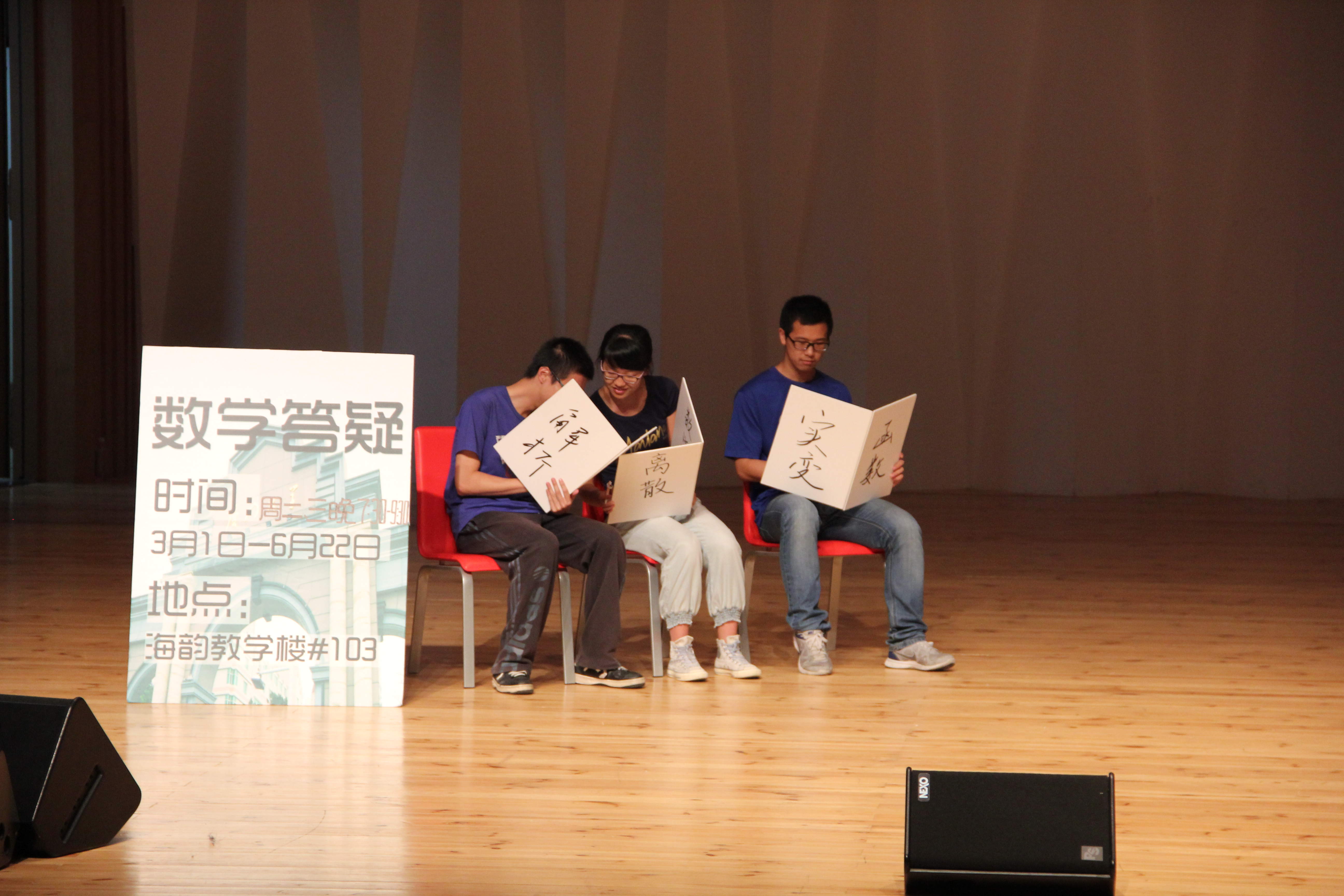 展示部分由我院2011级基地班团支部和经济学院团支部进行汇报演出。2011级基地班团支部舞台剧《青春》展示了支部的日常生活学习状况,体现了支部强大的凝聚力和勤奋上进的风貌。舞台剧真实地再现了同学们勤奋学习,相互激励的情景。沉迷游戏、学习困难的同学通过参加“阳光工程,学业帮扶”活动,由优秀同学帮助其提高学习成绩。自习过程中他们了解到“阳光工程,数学答疑”、“阳光行动,科技中学”志愿活动,立志发奋学习,争取学好数学加入志愿队伍。在学习之余,他们还加强体育锻炼,参加“阳光工程,健身计划”活动,将跳绳、长跑运动项目在舞台展示出来,表现出活泼阳光健康的形象,充满动感的舞蹈也让所有观众耳目一新,通过大家的努力,促使共同进步,这也体现着同学们团结互助、积极向上的精神面貌。伴着《真心英雄》的歌声,同学们心手相牵,大家齐喊“弘扬景润精神,再创数院辉煌”结束表演。