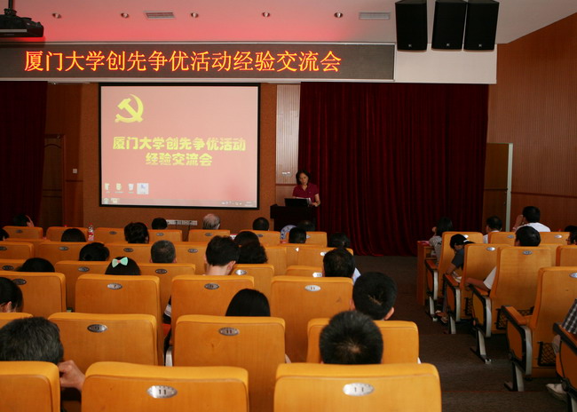 法学院党委书记侯利标介绍党委是如何通过提高领导班子素质,加强人才培养,建立健全相关制度,增强党员服务意识等方式将创先争优落到实处。数学科学学院党委书记张明智向大家讲述了全国名师林亚南教授的先进事迹,让大家认识了这位具有“情系学生,潜心教学”的高尚师德的先进教师。建筑与土木工程学院本科一、二年级党支部书记郑建斌结合自身党支部成员流动性强的特点,介绍支部开展创先争优活动的五个“难”和五个“好”,突显出年轻党支部的独特性。台湾研究院教工党支部宣传委员张文生向大家介绍了一个紧抓教学科研,主动为“海西”建设建言献策,积极与政府及地方各单位的联合共建的先进党支部。信息科学与技术学院国防生党支部学生党员曹天威则通过题为《坚定信念跟党走,携笔从戎献国防》的汇报向大家交流了国防生党支部是如何构建学习型、服务型、创新型、和谐型党支部的有关经验。化学化工学院固体表面物理化学国家重点实验室主任谢兆雄则重点向大家展示了实验室所具有的和谐文化,在学术带头人典型示范的作用下,实验室形成了一种潜心科研,协力合作的团队精神。