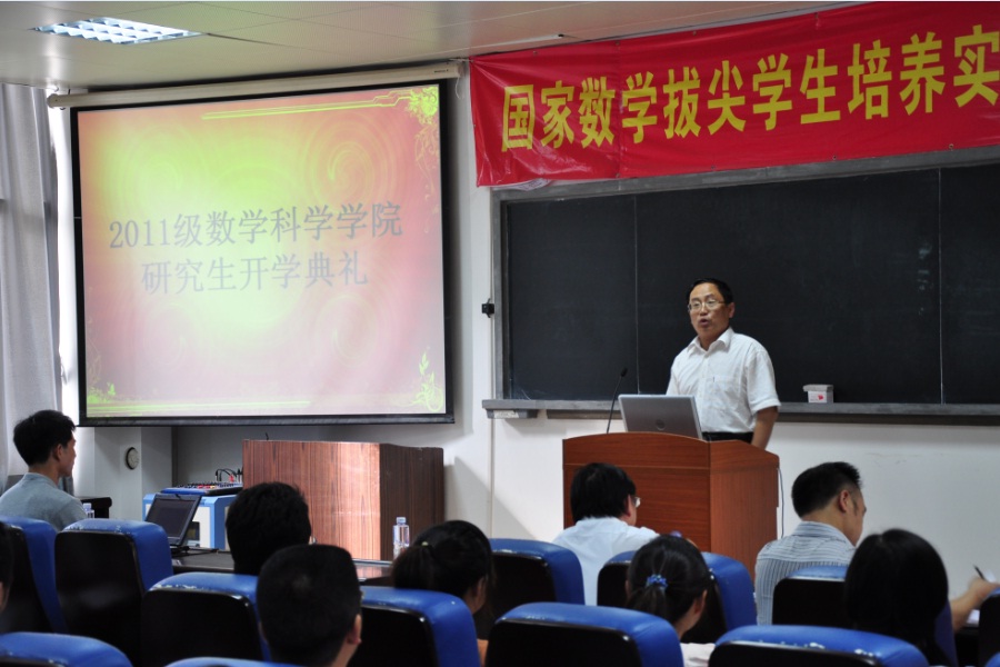2011年9月13日,数学科学学院2011级研究生开学典礼于海韵园实验楼105室召开。院长林亚南教授、副院长许传炬教授、党委副书记谭忠教授、党委副书记郑诚明老师和教学秘书林智雄老师出席了开学典礼。2011级硕士博士新生齐聚一堂,共同迎接崭新生活的开始。典礼由黄兆君老师主持。