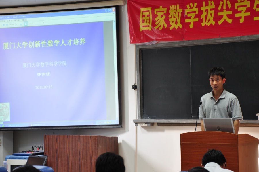 最后,许传炬副院长做了主题为厦门大学数学科学学院人才培养的报告,向大家介绍了有关科技创新以及导师的相关情况。