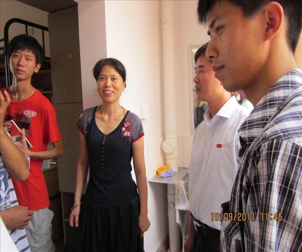 9月10日早上七点半,我院迎新工作正式展开。尽管酷暑难当,学院党委书记张明智、副书记郑诚明仍在辅导员陈向柳、石义凯等的陪同下,走访漳州校区学生宿舍,亲切慰问刚刚入学的2011级新同学。学院领导非常关心11级学子的家庭情况,关注贫困学生,带领他们办理“绿色通道”并通知相关事宜,鼓励他们努力学习专业知识,培养良好的工作和人际交流能力,发展成为国家和社会需要的栋梁之材。