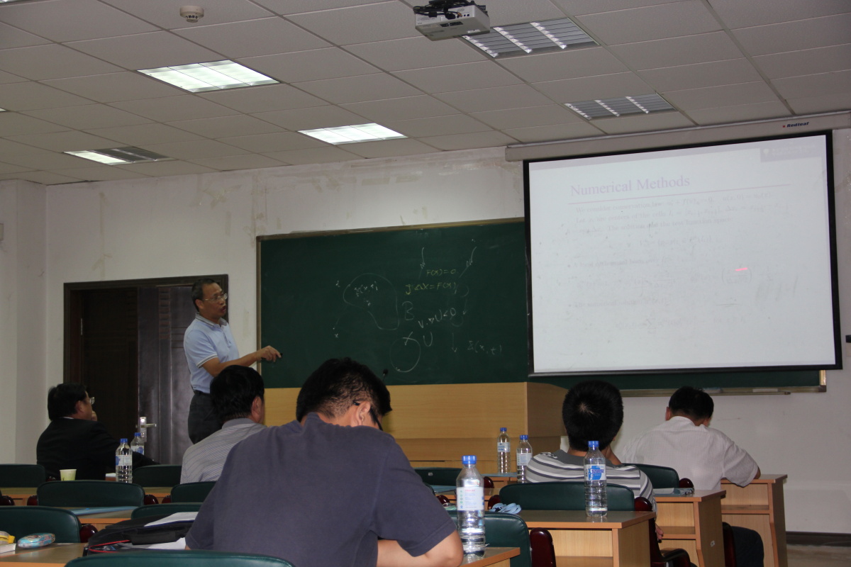 报告会上,我校8位专家作了8场的学术报告,分别是程金发教授的《分数阶差分方程理论》;李时银副教授的《随机波动率情况下的美式期权定价方法》;张莲珠教授的《图的Pfaffian性问题研究》;张志强教授的《模糊系统(Fuzzy System)在保险及精算中的应用》;赵俊宁教授的《Navier-Stokes方程的整体古典解》;白正简教授的《Nonnegative Inverse Eigenvalue Problem with Partial Eigendata》;邱建贤教授的《Weighted Essentially Non-Oscillatory limiters for Runge-Kutta Discontinuous Galerkin Methods》; 许传矩教授的《Numerical Solutions of the Fractional Differential Equations》。