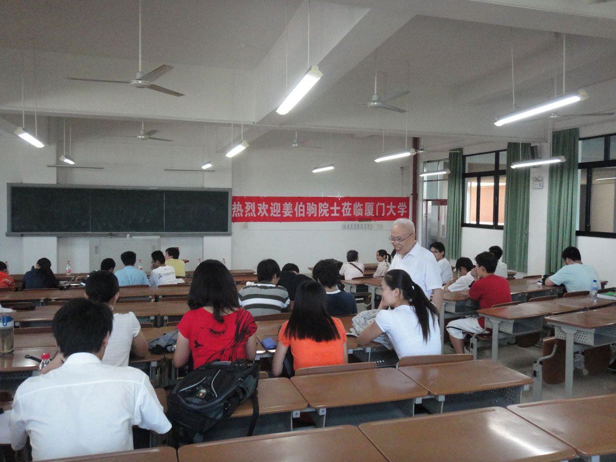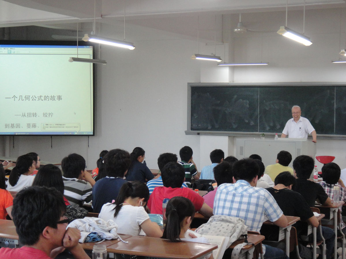 5月20日下午2:30,应数学科学学院邀请,中国科学院院士、北京大学教授姜伯驹教授莅临漳州校区做题为《一个几何公式的故事——从扭转、绞拧到基因、蔓藤、太阳喷发》的精彩学术讲座。讲座由我院党委书记张明智主持,并吸引了我院09、10级众多学生及许多外院同学前来聆听。
