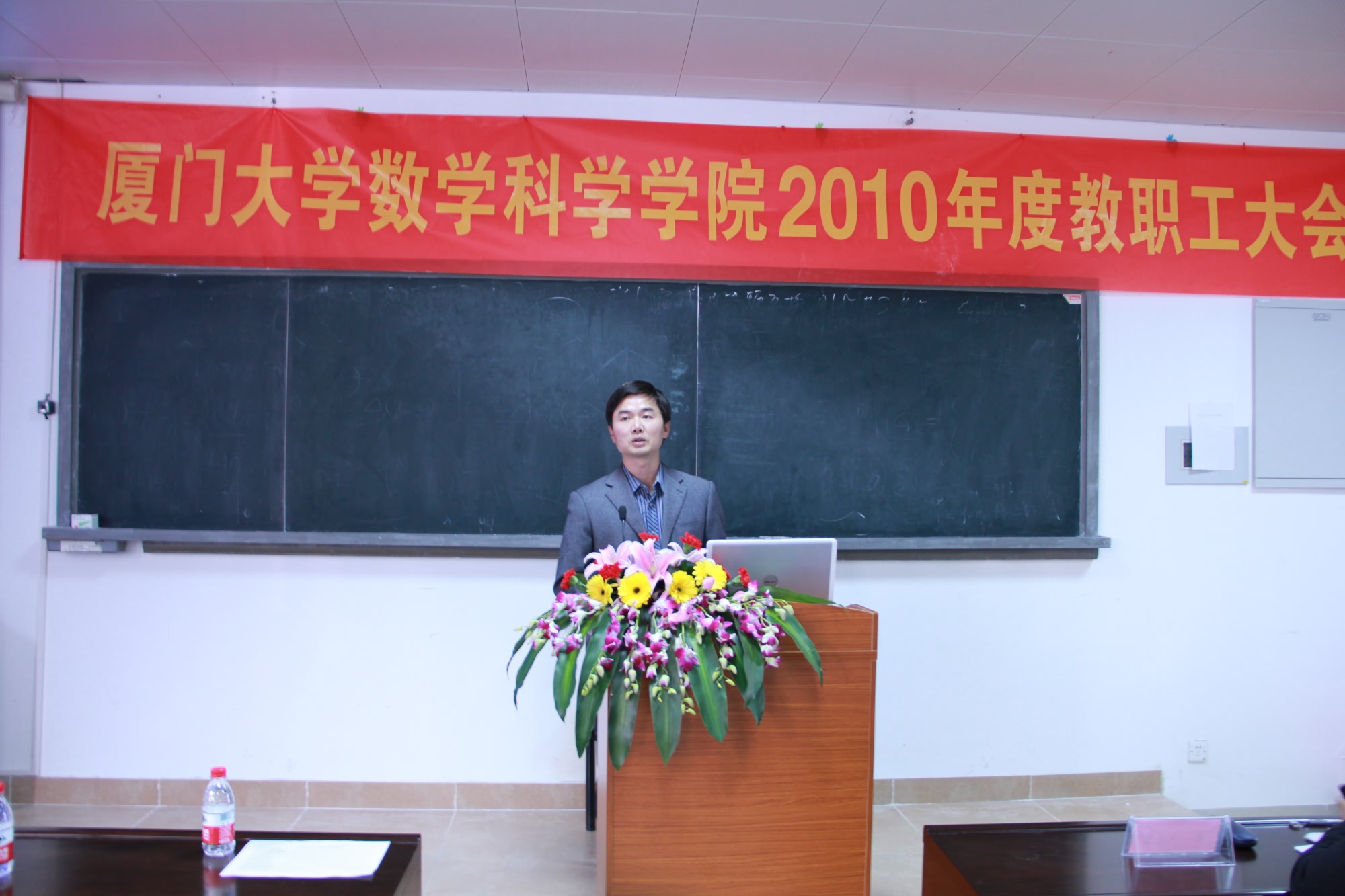 1月7日下午,数学科学学院在海韵实验楼105报告厅召开2010年度教职工大会,会议由学院工会主席曾吉文主持,学院全体教职员工出席了大会。