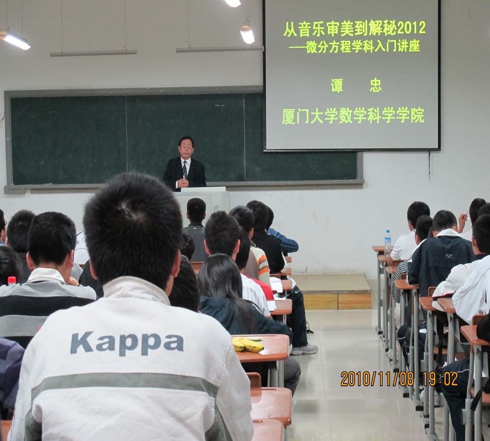 2010年11月8日晚7:00,厦门大学数学科学学院谭忠教授应邀在漳州校区4号楼212教室开展我院本学期第一场讲座。
