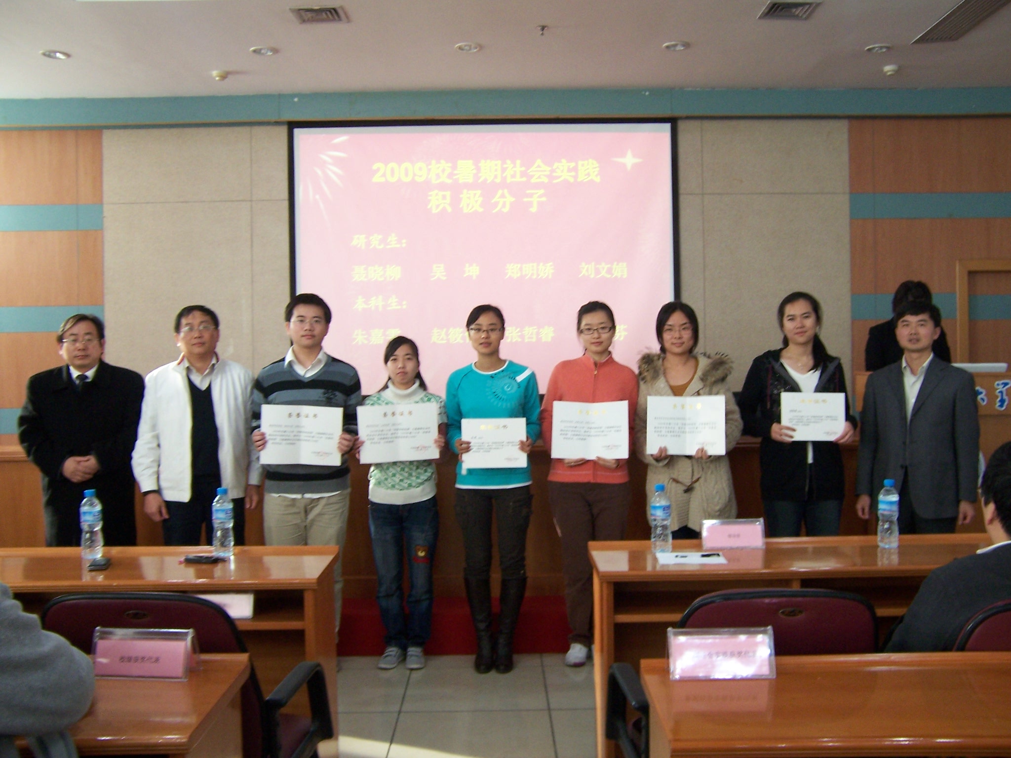 院长林亚南教授、院党委张明智书记、副书记谭忠教授为获得学校表彰的暑期社会实践“优秀团队”、“积极分子”颁发证书