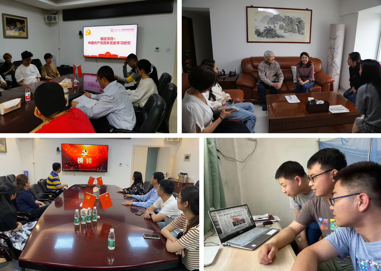 数学科学学院党委把党史学习教育作为当前和今后一个时期首要的政治任务,结合学校党史学习教育动员大会部署要求和《厦门大学党史学习教育实施方案》精神,及早动员部署,精心制定方案,将党史学习教育与学习习近平总书记贺信精神相结合,以提升组织力为重点,加强组织领导和思想引领,不断提升党支部工作质量和党员的政治能力,推动学习教育走深走实。