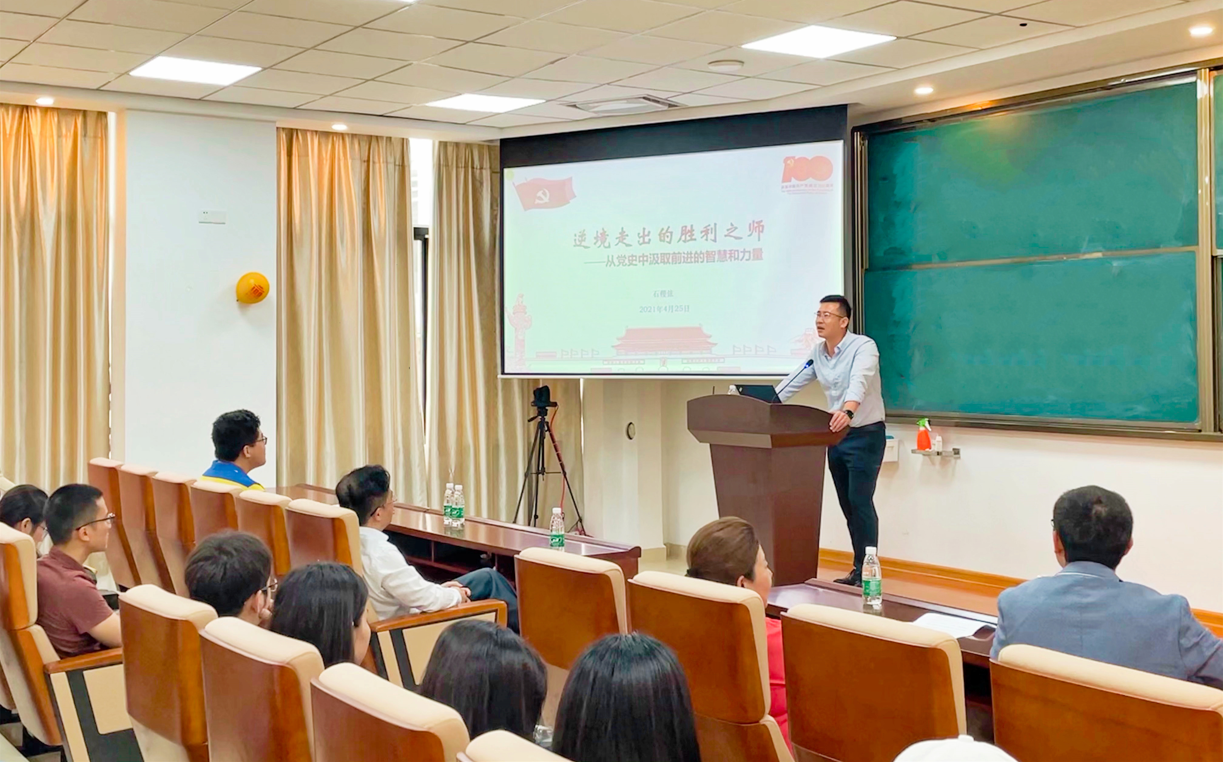 从3月31日部署推进会召开以来,学院各党支部党员和学生骨干已先行一步、行动起来,结合学校百年校庆,借助“三会一课”、组织生活会、固定党日+等平台,开展了党史知识学习、座谈交流、采访老党员、参观学校革命史展览馆与校史馆、集体观影等形式的学习教育活动。4月25日,院党委邀请中国人民解放军海军某部政治工作处副主任石稷弦在海韵园实验楼105为学生党员、入党积极分子作了一场题目为《从逆境走出的胜利之师——从党史中汲取前进的智慧和力量》的报告,这也是学院计划安排中的第一场党史学习教育专题讲座。