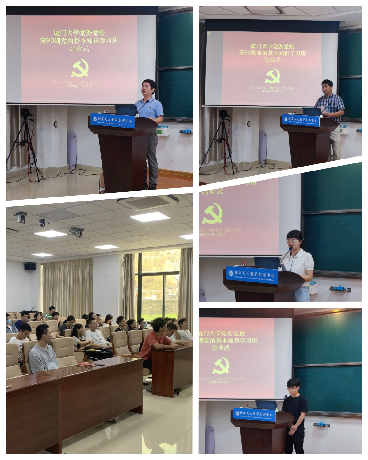 2023年10月27日下午,厦门大学党委党校93期(学生)党的基本知识学习班结业式在实验楼105报告厅顺利举办。承办单位数学科学学院党委书记张清榕、全体带队教师、党校学员参加结业式,数学科学学院党委副书记毛通双主持结业式。
