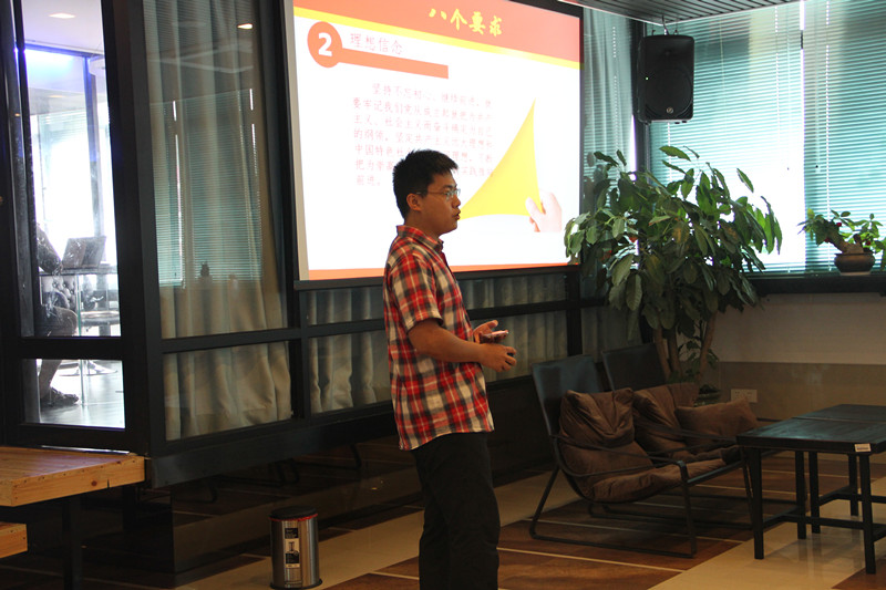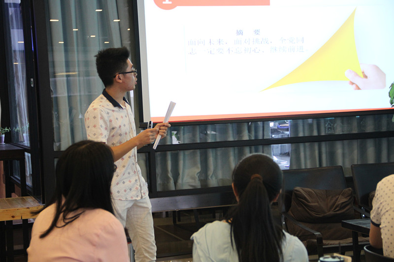 沙龙首先播放了新华社制作献礼建党95周年视频《红色气质》,视频展现了革命先辈为党的事业前仆后继、舍生忘死的历史画面,叙述朴实生动,感人至深,沙龙的主题报告就在全体党员缅怀先烈,继承遗志的氛围中展开。20142015级本科生支部书记廖康恩贝借助一系列数字介绍习近平总书记“七一”重要讲话的内容,又从普通党员的角度,谈了自己对“七一”重要讲话的理解,认为建党九十五周年之际,正处于中国特色社会主义事业发展的重要阶段,讲话见证辉煌更昭示未来,是党员今后工作、学习的重要遵循。20142015级本科生支部宣传委员黄俊斌的报告以“不忘初心,继续前进”为主线,梳理重要讲话对全体党员提出的具体要求,阐明重要讲话对党员教育、组织建设的指导意义。