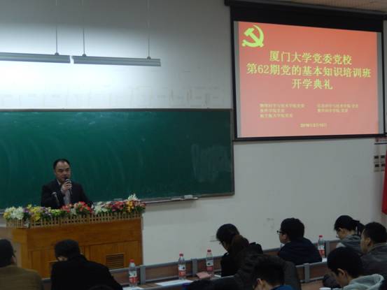 物理科学与技术学院党委副书记郑诚明做学习动员讲话。郑书记从端正学习态度,明确参加培训班的意义;端正入党动机,提高思想政治素质;提高思想认识,加强理论修养;坚定理想信念,增强党性锤炼;树立群众观念,发挥模范作用;理论联系实际,做到学有所用等六个方面对入党积极分子进行了动员。他还对办好本次培训班特别提出三点要求,希望各位学员能够通过党校学习进一步锻造自己的党性修养,加强组织纪律性,认真完成好教学计划,强调此次党校学习班从3月13日开班到3月22日,时间短、任务重,希望大家都能抓紧时间努力学习,在党校的考核中取得优异的成绩,顺利结业,争取早日成为一名中共预备党员