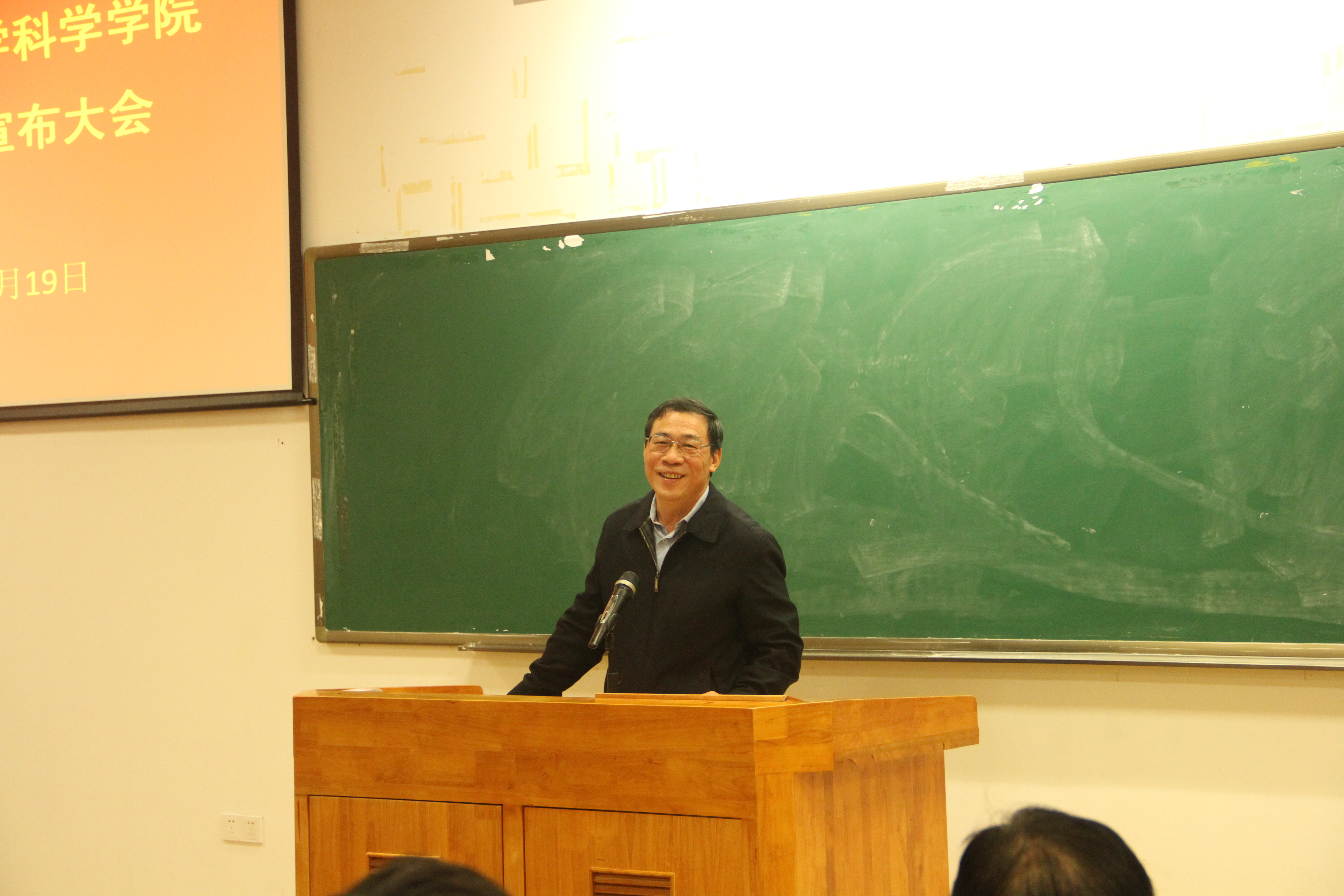 2018年1月19日下午,数学科学学院在数理大楼117教室召开教职工大会。校党委副书记、副校长李建发在会上宣读了校党委KY.COM数学科学学院党委书记、副书记职务任免的决定并作讲话。校党委组织部部长梁卫中主持会议。学院党政班子成员、全体教职工出席会议。