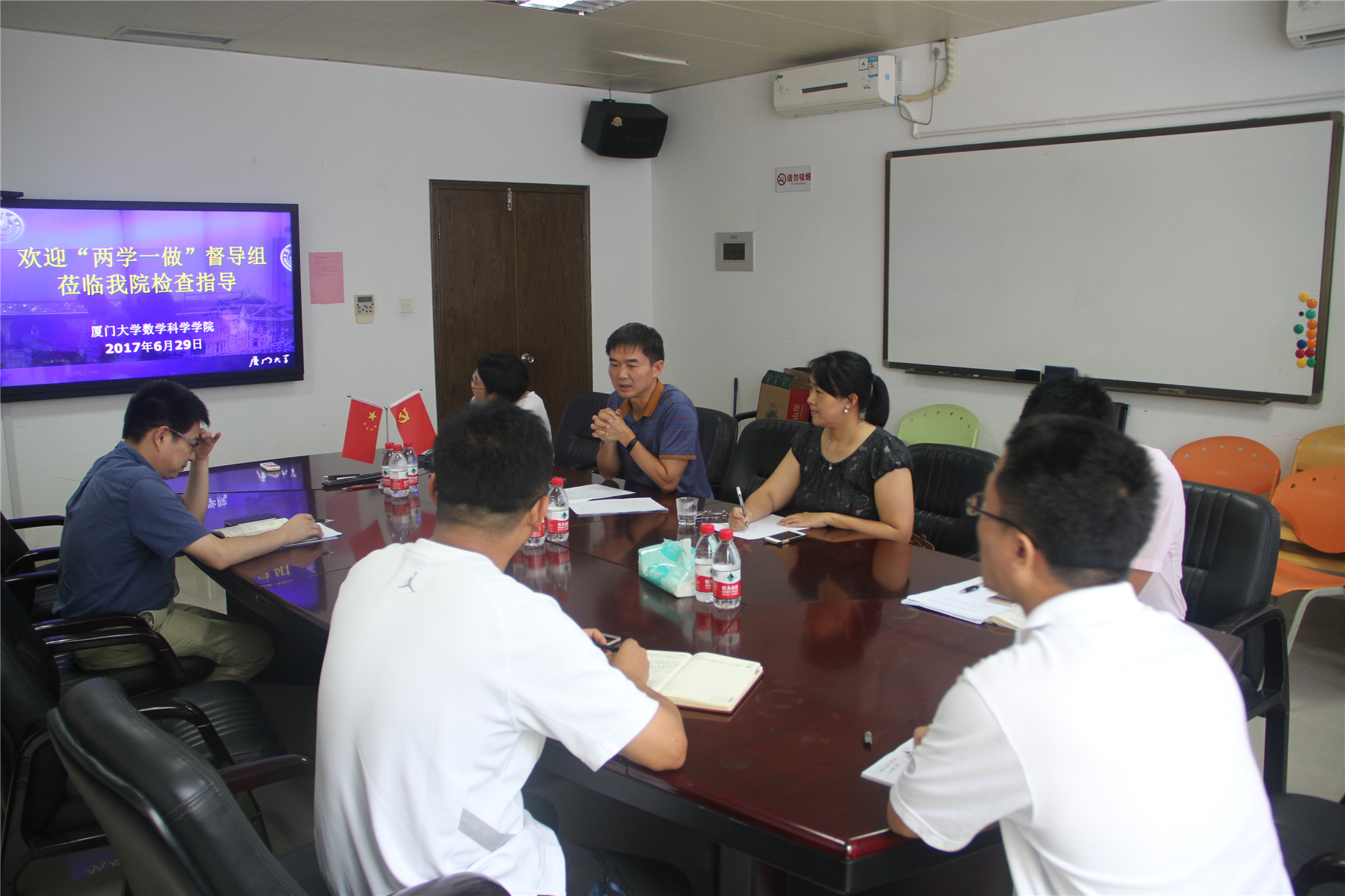 张明智向督导组汇报了一年来院党委开展“两学一做”学习教育的总体情况,介绍具体做法和实际成效,分析工作中的不足,明确下一步的努力方向。张明智重点报告了学院推进“两学一做”常态化制度化的工作情况。学院多次召开党委会研究相关工作,制定实施方案和工作安排,召开工作部署会、业务培训会,全面铺开“两学一做”常态化制度化工作。一个多月以来,学院召开理论报告会、组织全体党员外出参观考察、举办书记院长讲党课,各支部举行专题研讨、支部沙龙、共创共建,“两学一做”常态化制度化工作在我院呈现了亮点鲜明、扎实有效的好局面。