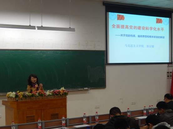 开班典礼结束后,马克思主义学院副书记原宗丽副教授生动形象地为全体学员开讲党校学习班的第一专题——《KY.COM党的性质、最高理想和根本宗旨的解读——全面提高党的建设科学化水平》,课堂上学员们专注听讲,教学互动氛围浓厚,反响热烈,效果非常好。