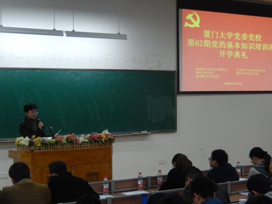 2016313日上午,伴随着《把一切献给党》的歌声,厦门大学党委党校第62期党的基本知识学习班(海韵校区五院)开学典礼在海韵园物理机电航空大楼117报告厅隆重举行。本期学习班由物理科学与技术学院党委、数学科学学院党委、信息科学与技术学院党委、软件学院党委、航空航天学院党委五个单位联合举办,由物理科学与技术学院党委承办。物理科学与技术学院党委副书记郑诚明、软件学院党委副书记刘钟南、信息科学与技术学院党委副书记李承华以及本期党校的全体带队老师和参训的218名入党积极分子参加了开学典礼。开学典礼由物理科学与技术学院党务秘书黄涵主持。