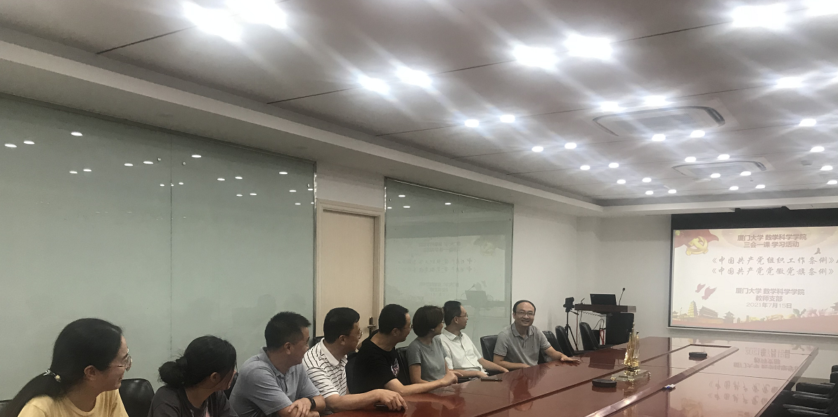 7月15日,数学科学学院教师第一党支部与教师第三党支部在天元中心会议室联合开展固定党日+活动,集中学习《中国共产党组织工作条例》和《中国共产党党徽党旗条例》,这也是支部开展党史学习教育系列活动之一。活动由教师第一支部书记张文和教师第三支部书记周达共同主持。