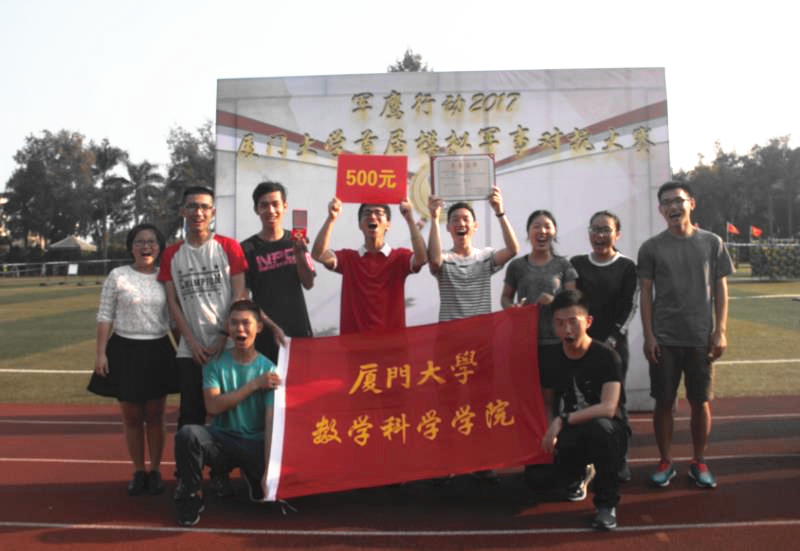 比赛即将开始,队长吴忠二带领大家激情呐喊口号:“微分天下,人生几何,青春飞扬,数院最强!”一瞬间热血沸腾,振奋士气!比赛一触即发!
