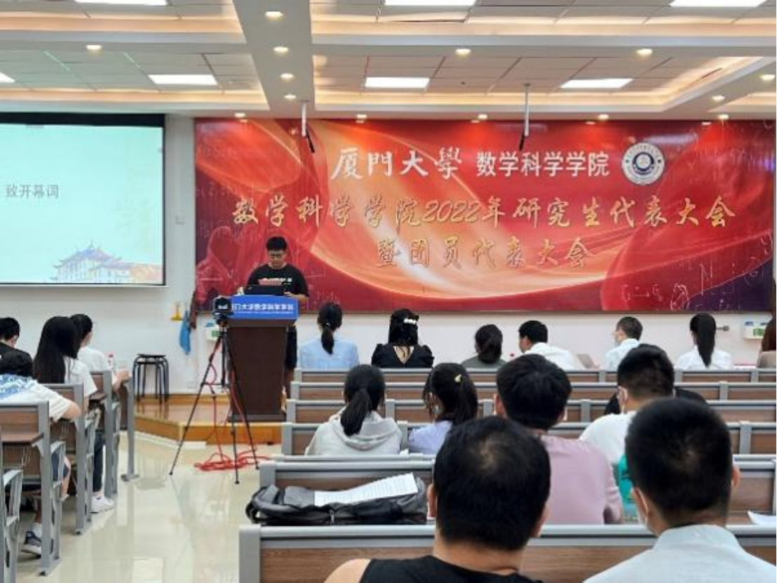 9月18日,数学科学学院2022年研究生代表大会暨团员代表大会在海韵园实验楼106教室召开。此次的研究生代表大会采用线上与线下同步进行的模式,未到场的代表们通过腾讯会议参与本次会议。