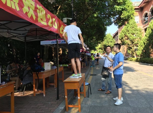23日上午,尽管天气炎热,阳光刺眼,但学长学姐们依旧不辞辛苦,在学生公寓拉对联,张贴横幅、宿舍海报、宿舍门牌、安全须知、温馨提示,支起遮阳帐篷,摆放桌椅,准备迎新易拉宝,努力营造温馨的迎新氛围。