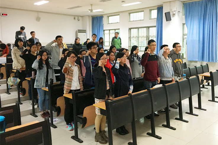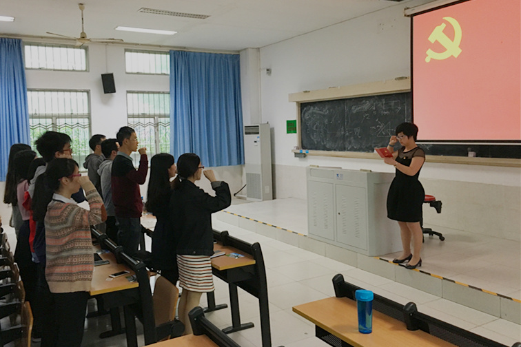 2016年上半年,2013级本科生党支部新发展两名党员:曹星瑶、石琢。本次仪式上,新党员宣誓、老党员重温誓词、入党积极分子见证仪式接受教育。