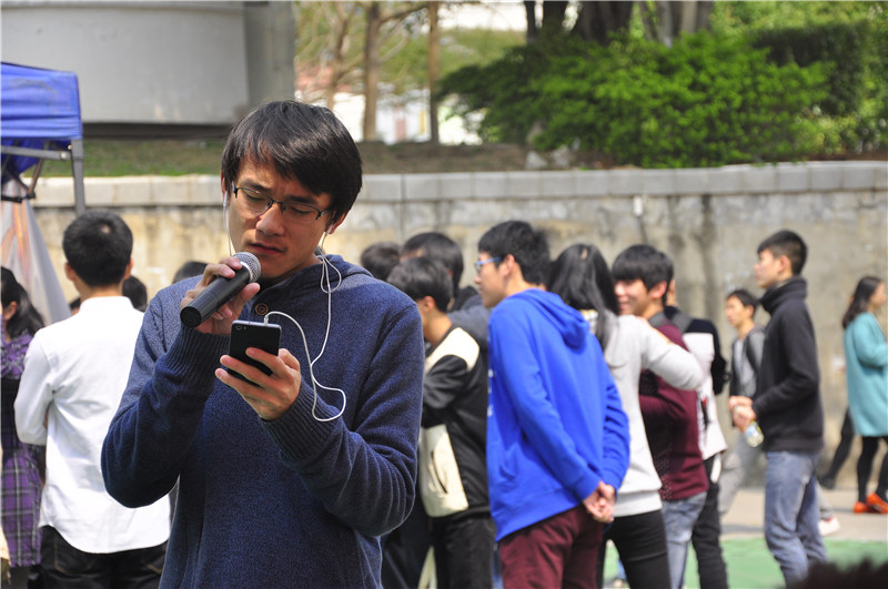 比赛气氛愈加热烈,不少现场报名的人,刘鹤天的女生节喊楼歌曲《董小姐》,eason粉的桂壕《稳稳的幸福》,姜伯汉练习许久了的《冻结》,吴伟银的《一生有你》更有廖康恩贝在室友鼓动下的无敌转音版《老男孩》。听到自己的澡堂经典曲目之一被学弟唱了,开熠摩拳擦掌用自己浑厚的嗓音又演绎了一遍《老男孩》,由此可见数院派歌艺精深,同一门武艺都能衍化出诸般变化。说到澡堂流,另一个不得不提的人就是阿伍了,澡堂流绝不是一个人在战斗,薪火相传到了14级虽然阿伍同样穿着小黄人,曲目却有所变化一首《李白》满满雅士气息。众人起哄下王导终于亮开嗓子,一首《知足》虽然忘词数次,但是实力唱将风范依旧。